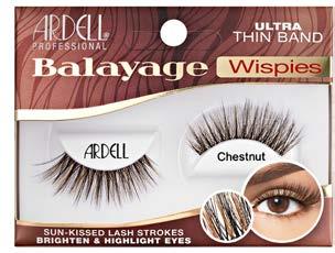 New Balayage Wispies collection delivers handcrafted sun-kissed and highlighted lashes for instant depth and dimension! The beautiful highlighted hues range from blonde to warm brown and are interspersed and layered throughout black fibers for a subtle, soft highlighted look. Minimum Order: 4 / Case Pack: 72