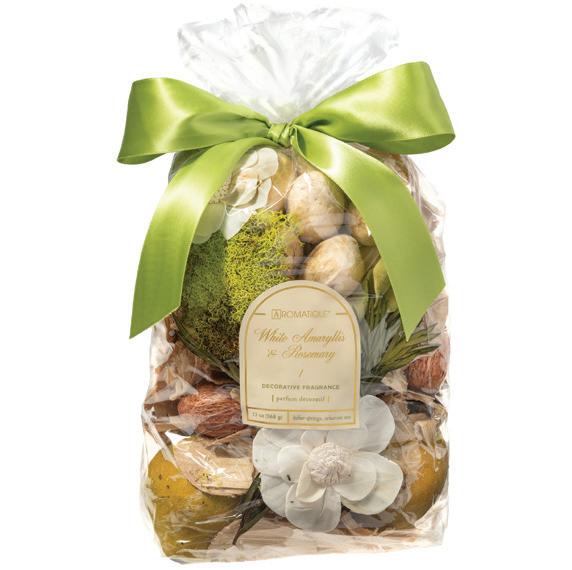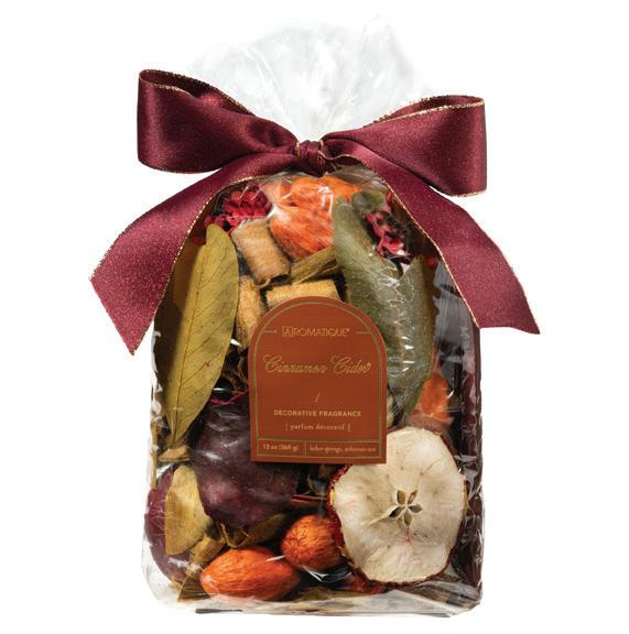 NEW SEASON, NEW LOOK Experience our updated Decorative Fragrance Bags with a festive makeover! Featuring colorful new botanicals, seasonal ribbon elegantly tied in a bow, a decorative metallic fragrance label, and a charming to-and-from hangtag, making it an effortless gift choice. 02 ~ 03 REED DIFFUSER TESTER 5 FL OZ SKU: 34-174 CASE PACK: 1 UNIT: $10.00 DECORATIVE FRAGRANCE STANDARD BAG - 8 OZ SKU: 34-165 CASE PACK: 15 UNIT: $10.25 MSRP: $20.50 USE TIME: UP TO 4 WEEKS PETITE TUMBLER GLASS CANDLE - 4.5 OZ SKU: 34-170 CASE PACK: 12 UNIT: $6.50 MSRP: $14.25 SIZE: 3.2˝D X 2.4˝H USE TIME: UP TO 30 HRS BURNING REED DIFFUSER SET - 5 FL OZ SKU: 34-175 CASE PACK: 4 UNIT: $20.00 MSRP: $40.00 SIZE: 2.7˝SQ X 8.3125˝H USE TIME: UP TO 12 WEEKS REFRESHER OIL - .5 FL OZ SKU: 34-166 CASE PACK: 8 UNIT: $6.00 MSRP: $12.50 SIZE: 2.6˝H X 1˝D TEXTURED GLASS CANDLE - 6 OZ SKU: 34-169 CASE PACK: 11 UNIT: $9.00 MSRP: $18.00 SIZE: 3˝D X 3.25˝H USE TIME: UP TO 40 HRS BURNING DIFFUSER OIL REFILL - 4 FL OZ SKU: 34-176 CASE PACK: 6 UNIT: $11.00 MSRP: $22.00 SIZE: 5.5˝H X 1.5˝D AEROSOL ROOM SPRAY 5 OZ SKU: 34-167 CASE PACK: 8 UNIT: $7.00 MSRP: $14.00 SIZE: 7.125˝H X 1.75˝D CUBE GLASS CANDLE - 12 OZ SKU: 34-171 CASE PACK: 6 UNIT: $14.50 MSRP: $30.00 SIZE: 3.62˝SQ X 3.63˝H USE TIME: UP TO 40 HRS BURNING AROMA CARD SKU: 34-173 CASE PACK: 20 UNIT: $2.00 MSRP: $4.25 SIZE: 2.8˝W X 4˝H USE TIME: UP TO 3 WEEKS VOTIVE GLASS CANDLE 2.7 OZ SKU: 34-168 CASE PACK: 12 UNIT: $3.75 MSRP: $8.00 SIZE: 2.125˝D X 3˝H USE TIME: UP TO 20 HRS BURNING TEXTURED GLASS CANDLE WITH LID - 15 OZ SKU: 34-172 CASE PACK: 4 UNIT: $17.50 MSRP: $35.00 SIZE: 3.8˝D X 5.1˝H USE TIME: UP TO 120 HRS BURNING AROMA WAX MELTS - 2.7 OZ SKU: 60-528 CASE PACK: 12 UNIT: $3.75 MSRP: $7.50 SIZE: 3.375˝W X 5.125˝H X 1˝D USE TIME: UP TO 12 HRS/CUBE
