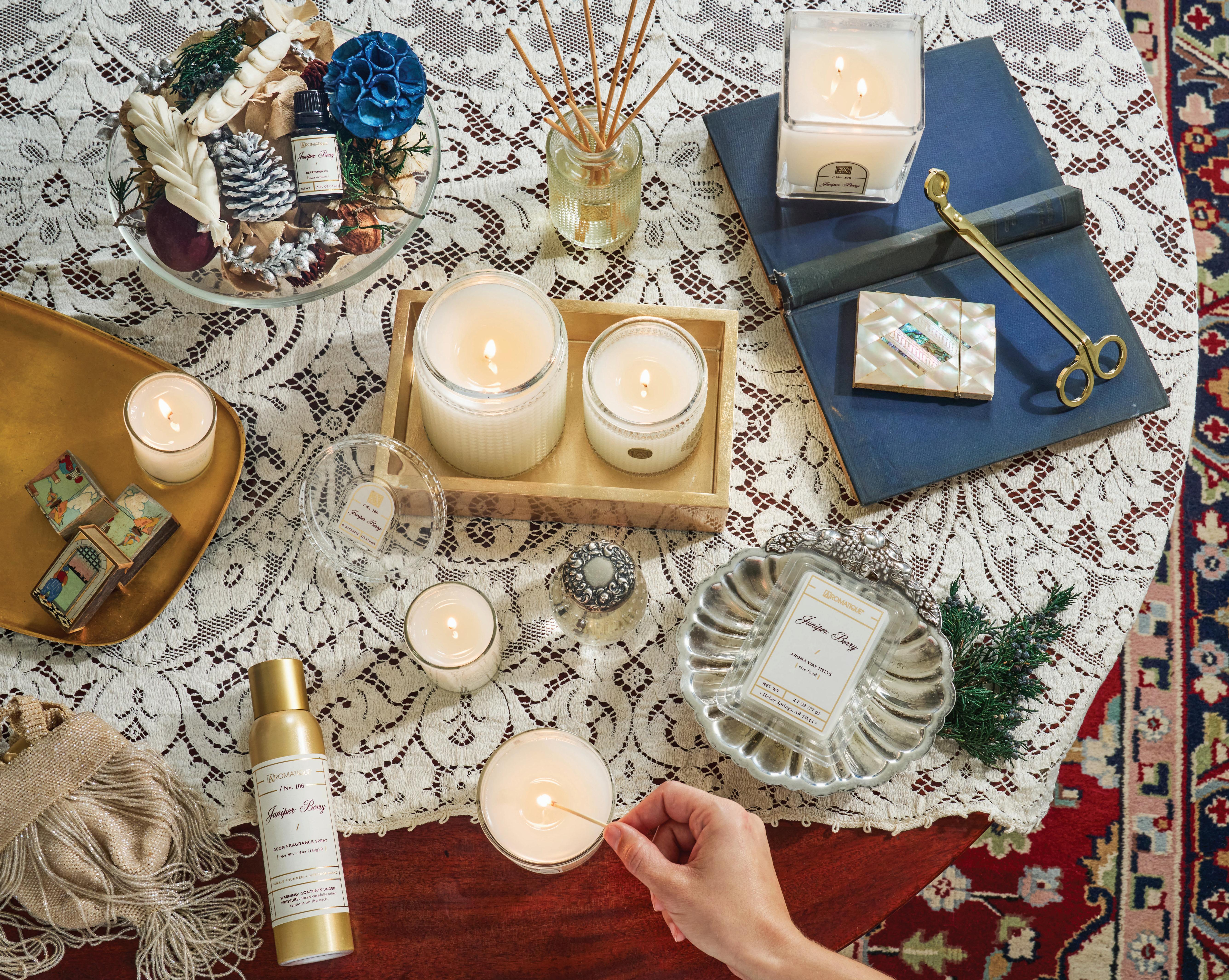 Capture coziness year round with our newest fragrance! An indulgent blend of holly berries and cardamom paired with creamy sandalwood and orange blossom.