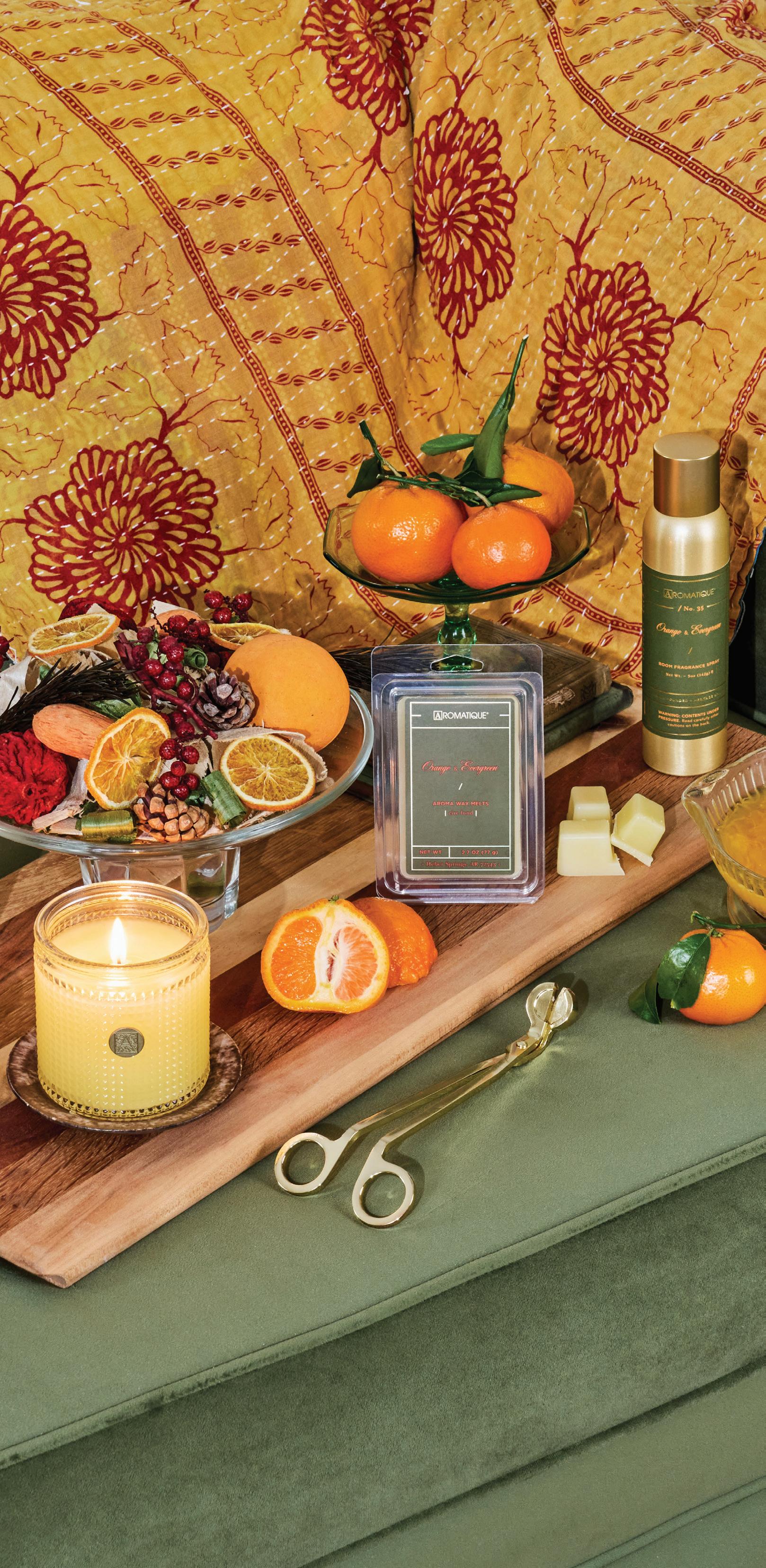 THE ESSENCE OF CITRUS AND MISTLETOE WARMTH WITH GRAPEFRUIT, MANDARIN, AND A HINT OF VANILLA MUSK. ROYAL