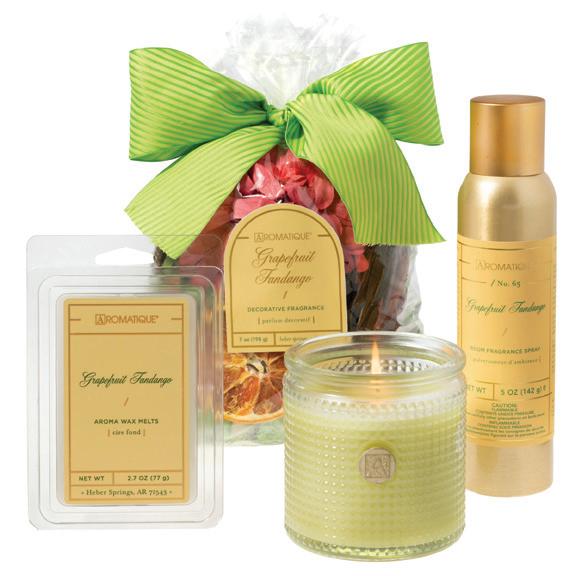 40 41 AEROSOL ROOM SPRAY - 5 OZ SKU: 50-350 CASE PACK: 8 UNIT: $6.50 MSRP: $13.50 SIZE: 7.125˝H X 1.75˝D TEXTURED GLASS CANDLE - 6 OZ SKU: 50-355 CASE PACK: 11 UNIT: $8.00 MSRP: $17.50 SIZE: 3˝D X 3.25˝H USE TIME: UP TO 40 HRS BURNING AROMA WAX MELTS - 2.7 OZ SKU: 60-515 CASE PACK: 12 UNIT: $3.75 MSRP: $7.50 SIZE: 3.375˝W X 5.125˝H X 1˝D USE TIME: UP TO 12 HRS/CUBE COMBO PACK SKU: 50-364 UNIT: $181.00 MSRP: N/A CASE PACK: 6 DECORATIVE FRAGRANCE 8 AEROSOL ROOM SPRAYS 6 TEXTURED GLASS CANDLES 6 AROMA WAX MELTS No 65 Citrus Grapefruit Fandango An invigorating fragrance of tangy citrus notes blended with cassis and peach, accented with rose and musk. DECORATIVE FRAGRANCE STANDARD BAG - 7 OZ SKU: 50-363 CASE PACK: 15 UNIT: $9.75 MSRP: $19.50 USE TIME: UP TO 4 WEEKS REFRESHER OIL - .5 FL OZ SKU: 50-360 CASE PACK: 8 UNIT: $5.75 MSRP: $12.50 SIZE: 2.6˝H X 1˝D AEROSOL ROOM SPRAY - 5 OZ SKU: 76-524 CASE PACK: 8 UNIT: $6.50 MSRP: $13.50 SIZE: 7.125˝H X 1.75˝D TEXTURED GLASS CANDLE - 6 OZ SKU: 76-534 CASE PACK: 11 UNIT: $8.00 MSRP: $17.50 SIZE: 3˝D X 3.25˝H USE TIME: UP TO 40 HRS BURNING AROMA WAX MELTS - 2.7 OZ SKU: 60-525 CASE PACK: 12 UNIT: $3.75 MSRP: $7.50 SIZE: 3.375˝W X 5.125˝H X 1˝D USE TIME: UP TO 12 HRS/CUBE COMBO PACK SKU: 76-542 UNIT: $181.00 MSRP: N/A CASE PACK: 6 DECORATIVE FRAGRANCE 8 AEROSOL ROOM SPRAYS 6 TEXTURED GLASS CANDLES 6 AROMA WAX MELTS DECORATIVE FRAGRANCE STANDARD BAG - 7.5 OZ SKU: 76-541 CASE PACK: 15 UNIT: $9.75 MSRP: $19.50 USE TIME: UP TO 4 WEEKS REFRESHER OIL - .5 FL OZ SKU: 76-537 CASE PACK: 8 UNIT: $5.75 MSRP: $12.50 SIZE: 2.6˝H X 1˝D No 10 Floral The Smell of Gardenia Gardenia blooms paired with hyacinth, white jasmine, and rose topped with peach nectar and warm balsam.