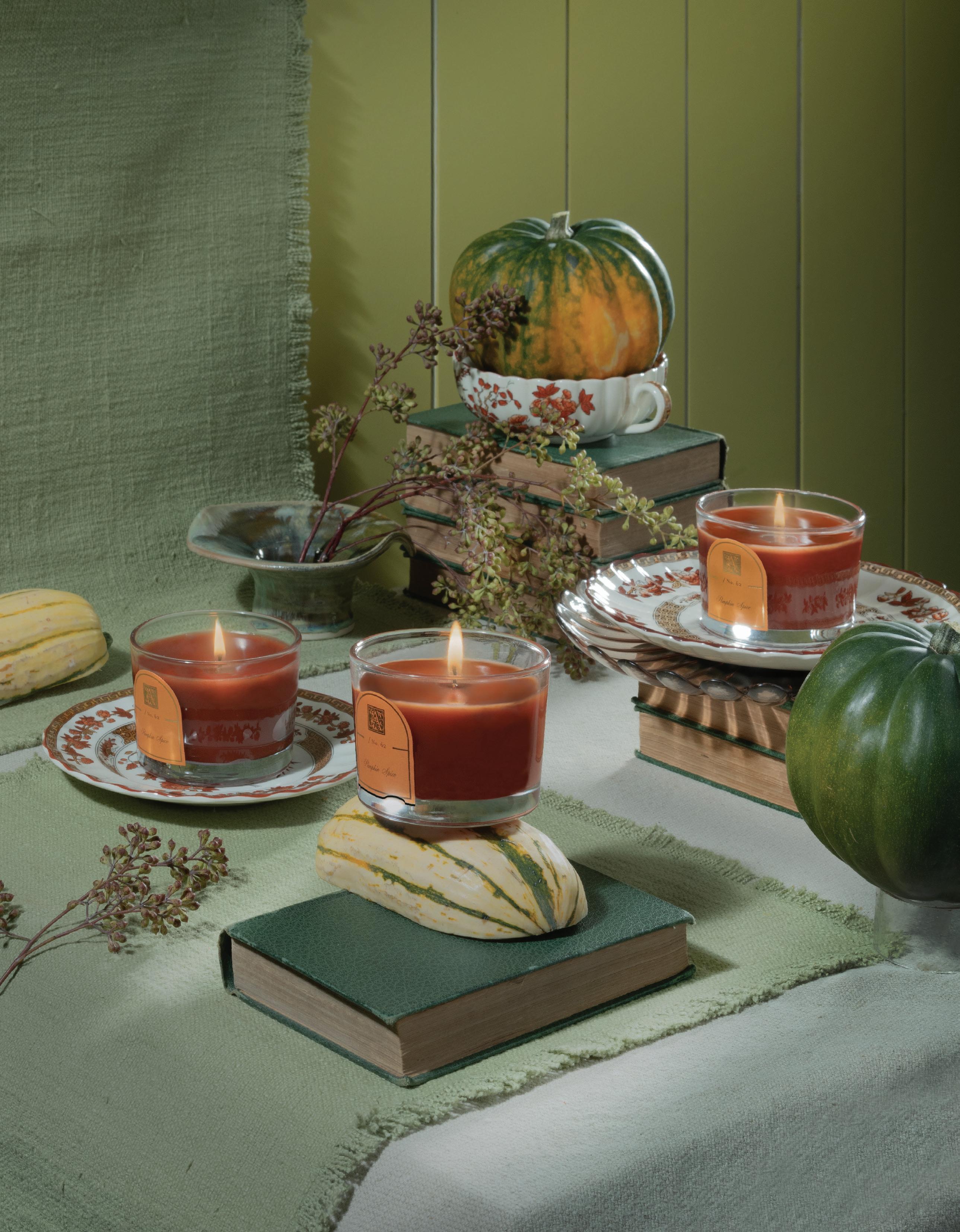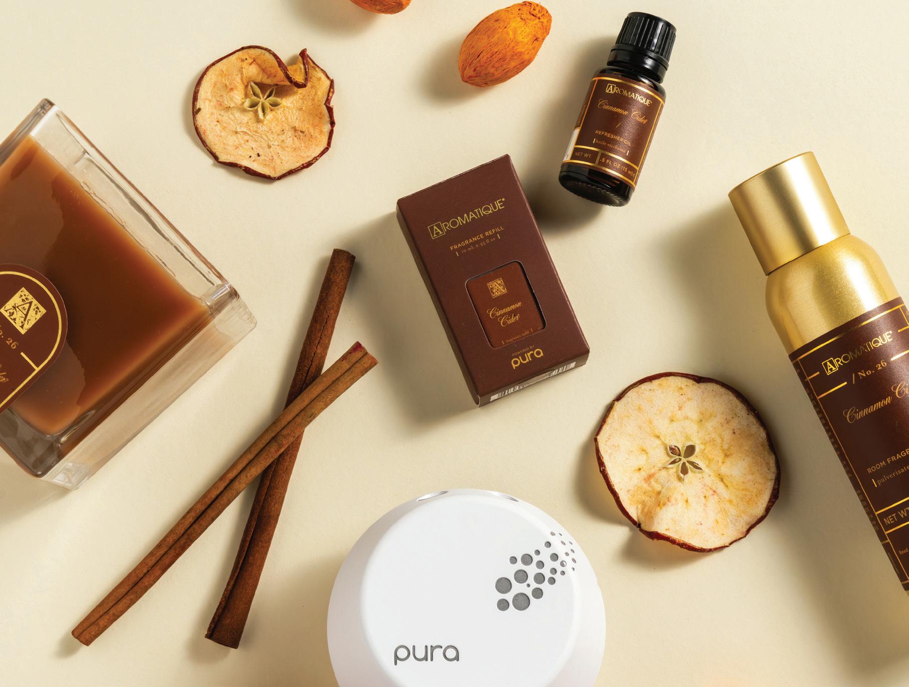 DECORATIVE FRAGRANCE STANDARD BAG - 7 OZ SKU: 61-344 CASE PACK: 15 UNIT: $10.25 MSRP: $20.50 USE TIME: UP TO 4 WEEKS DECORATIVE FRAGRANCE LARGE BAG - 11 OZ SKU: 61-345 CASE PACK: 14 UNIT: $15.50 MSRP: $31.00 USE TIME: UP TO 4 WEEKS DECORATIVE FRAGRANCE PINECONE BAG SKU: 60-499 CASE PACK: 10 UNIT: $5.50 MSRP: $11.00 USE TIME: UP TO 4 WEEKS REFRESHER OIL .5 FL OZ SKU: 61-331 CASE PACK: 8 UNIT: $6.00 MSRP: $12.50 SIZE: 2.6˝H X 1˝D PURA REFILL - .33 FL OZ (BOXED) SKU: 810076675695 CASE PACK: 6 UNIT: $9.00 MSRP: $18.00 SIZE: 1.75˝L X 1˝W X 3˝H PURA CINNAMON CIDER ® / PUMPKIN SPICE BUNDLE SKU: 810076675732 CASE PACK: 6 UNIT: $55.00 MSRP: $110.00 SIZE: 4.6˝L X 4.6˝W X 3.8˝H NEW LOOK NEW LOOK HAND CRAFTED IN THE USA 10 ~ 11 PETITE TUMBLER GLASS CANDLE - 4.5 OZ SKU: 61-338 CASE PACK: 12 UNIT: $6.50 MSRP: $14.25 SIZE: 3.2˝D X 2.4˝H USE TIME: UP TO 30 HRS BURNING VOTIVE GLASS CANDLE - 2.7 OZ SKU: 61-323 CASE PACK: 12 UNIT: $3.75 MSRP: $8.00 SIZE: 2.125˝D X 3˝H USE TIME: UP TO 20 HRS BURNING REED DIFFUSER SET - 5 FL OZ SKU: 61-340 CASE PACK: 4 UNIT: $20.00 MSRP: $40.00 SIZE: 2.7˝SQ X 8.3125˝H USE TIME: UP TO 12 WEEKS TEXTURED GLASS CANDLE - 6 OZ SKU: 61-347 CASE PACK: 11 UNIT: $9.00 MSRP: $18.00 SIZE: 3˝D X 3.25˝H USE TIME: UP TO 40 HRS BURNING DIFFUSER OIL REFILL - 4 FL OZ SKU: 61-341 CASE PACK: 6 UNIT: $11.00 MSRP: $22.00 SIZE: 5.5˝H X 1.5˝D CUBE GLASS CANDLE - 12 OZ SKU: 61-324 CASE PACK: 6 UNIT: $14.50 MSRP: $30.00 SIZE: 3.62˝SQ X 3.63˝H USE TIME: UP TO 40 HRS BURNING AROMA CARD SKU: 61-325 CASE PACK: 20 UNIT: $2.00 MSRP: $4.25 SIZE: 2.8˝W X 4˝H USE TIME: UP TO 3 WEEKS AROMA WAX MELTS - 2.7 OZ SKU: 60-501 CASE PACK: 12 UNIT: $3.75 MSRP: $7.50 SIZE: 3.375˝W X 5.125˝H X 1˝D USE TIME: UP TO 12 HRS/CUBE TEXTURED GLASS CANDLE WITH LID - 15 OZ SKU: 61-348 CASE PACK: 4 UNIT: $17.50 MSRP: $35.00 SIZE: 3.8˝D X 5.1˝H USE TIME: UP TO 120 HRS BURNING New AEROSOL ROOM SPRAY - 5 OZ SKU: 61-346 CASE PACK: 8 UNIT: $7.00 MSRP: $14.00 SIZE: 7.125˝H X 1.75˝D