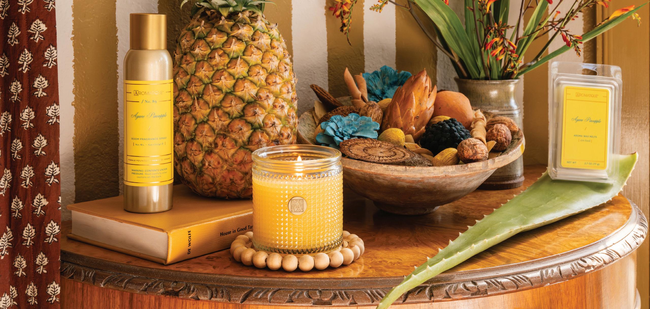 REFRESHER OIL - .5 FL OZ SKU: 24-203 CASE PACK: 8 UNIT: $6.00 MSRP: $12.50 SIZE: 2.6˝H X 1˝D TEXTURED GLASS CANDLE - 6 OZ SKU: 24-216 CASE PACK: 11 UNIT: $9.00 MSRP: $18.00 SIZE: 3˝D X 3.25˝H USE TIME: UP TO 40 HRS BURNING AROMA WAX MELTS - 2.7 OZ SKU: 60-508 CASE PACK: 12 UNIT: $3.75 MSRP: $7.50 SIZE: 3.375˝W X 5.125˝H X 1˝D USE TIME: UP TO 12 HRS/CUBE COMBO PACK SKU: 24-212 UNIT: $194.00 MSRP: N/A CASE PACK: 6 DECORATIVE FRAGRANCE 8 AEROSOL ROOM SPRAYS 6 TEXTURED GLASS CANDLES 6 AROMA WAX MELTS DECORATIVE FRAGRANCE STANDARD BAG - 7 OZ SKU: 24-214 CASE PACK: 15 UNIT: $10.25 MSRP: $20.50 USE TIME: UP TO 4 WEEKS No 91 Woods Bourbon & Bergamot Bold citrus softened with cashmere musk and hints of bourbon. NEW LOOK 36 ~ 37 AEROSOL ROOM SPRAY - 5 OZ SKU: 81-205 CASE PACK: 8 UNIT: $6.50 MSRP: $13.50 SIZE: 7.125˝H X 1.75˝D AEROSOL ROOM SPRAY - 5 OZ SKU: 24-215 CASE PACK: 8 UNIT: $7.00 MSRP: $14.00 SIZE: 7.125˝H X 1.75˝D TEXTURED GLASS CANDLE - 6 OZ SKU: 81-210 CASE PACK: 11 UNIT: $8.00 MSRP: $17.50 SIZE: 3˝D X 3.25˝H USE TIME: UP TO 40 HRS BURNING AROMA WAX MELTS - 2.7 OZ SKU: 60-517 CASE PACK: 12 UNIT: $3.75 MSRP: $7.50 SIZE: 3.375˝W X 5.125˝H X 1˝D USE TIME: UP TO 12 HRS/CUBE COMBO PACK SKU: 81-222 UNIT: $181.00 MSRP: N/A CASE PACK: 6 DECORATIVE FRAGRANCE 8 AEROSOL ROOM SPRAYS 6 TEXTURED GLASS CANDLES 6 AROMA WAX MELTS DECORATIVE FRAGRANCE STANDARD BAG - 7 OZ SKU: 81-221 CASE PACK: 15 UNIT: $9.75 MSRP: $19.50 USE TIME: UP TO 4 WEEKS REFRESHER OIL - .5 FL OZ SKU: 81-215 CASE PACK: 8 UNIT: $5.75 MSRP: $12.50 SIZE: 2.6˝H X 1˝D No 89 Citrus Agave Pineapple A lush, fruity floral blend of pineapples and rosewater paired with sweet agave and jasmine.