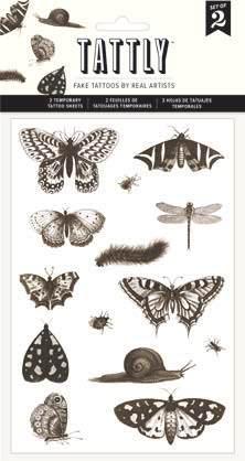 Tattly Tattoo Sheets contain multiple designs that are meant to be cut apart and shared! Each style comes with two identical sheets packaged in a polybag with its own unique backer card, featuring a full-color photo of the applied designs. All Tattoo Sheets include a sturdy hang tab that can be displayed on a pegboard or even on our special spinning display unit! (pg. 57)