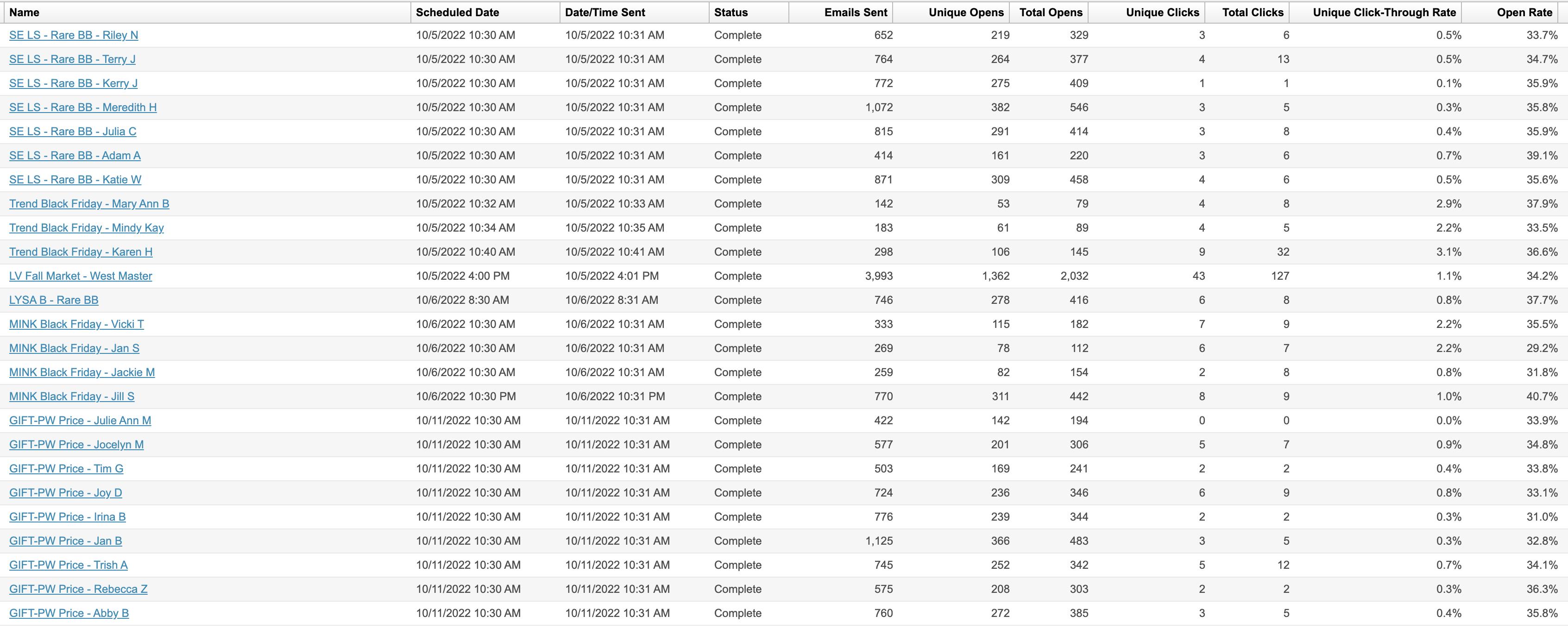 Gift - 4 SE Lifestyle- 3 MA Lifestyle - 2 Trend - 3 MINK - 3 NE - 6 West - 5 Sent: 1 2 1 1 1 3 2 2 2 0 3 1 1 2 2 3 3 0 0 0 Total to Date Master Eblasts - 2 Work In Progress International Sales - 2 Social - 0 Newsletter - October - Sent Eblast Schedule 10/22 - Wk1& 2 15 of 31 sent