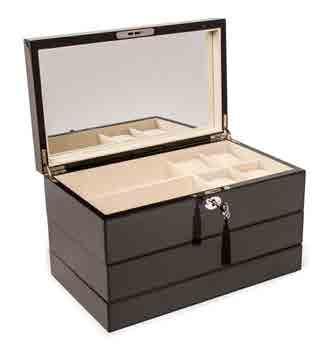 MATTE BLACK BACKGAMMON SET / $110 15.5" × 10.5" × 3"