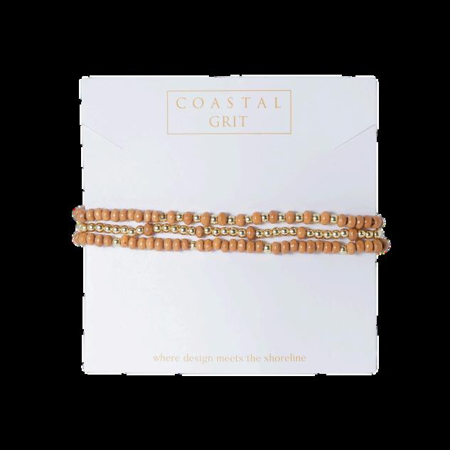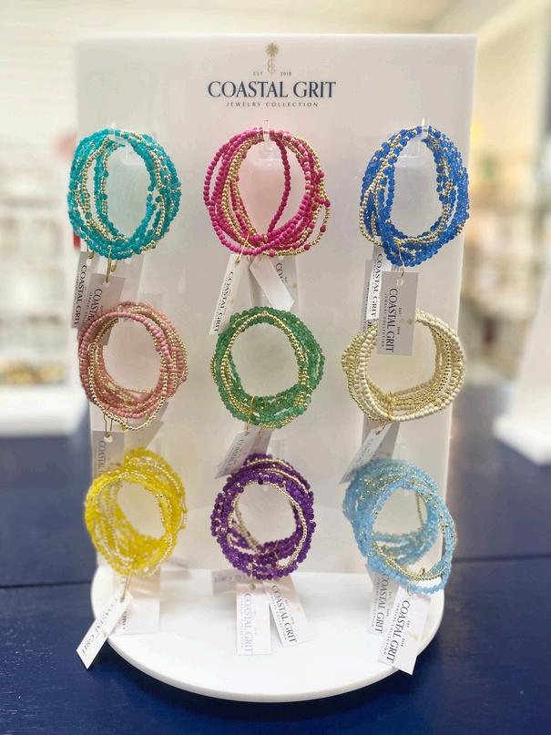 JESSICA TAUGHT A FEW CLOSE FRIENDS TO MAKE BRACELETS WHILE THEY SAT AROUND HER KITCHEN TABLE HELPING HER FULFILL WHOLESALE ORDERS. AFTER JOINING A NATIONAL SALES REP GROUP SHORTLY AFTER AND MOVING INTO A PERMANENT SHOWROOM AT DALLAS MARKET CENTER, THE PRODUCTION OF COASTAL GRIT OUTGREW THE KITCHEN TABLE