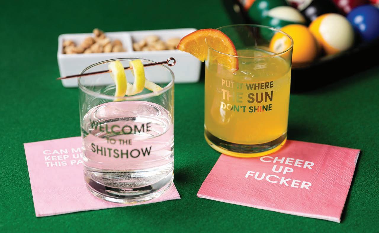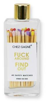 A TWO-FER! REUSABLE 13.25OZ ROCKS GLASS WITH GOLD FOIL FILLED WITH 200 MATCHES / TOPPED WITH GOLD LID STRIKER ON BACK / 2 EXTRA STRIKERS INCLUDED $15 EACH, MOQ: 6 PER STYLE