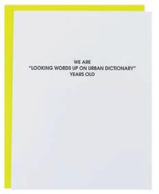 Our cards are printed on tree free paper. All paper and envelopes are FSC certified. Card cellos are 100% biodegradable. All greeting card designs are printed on vintage printing presses. Due to the handmade nature of letterpress printing, slight variations in ink coverage and registration are possible and are part of the beauty of this printing process.