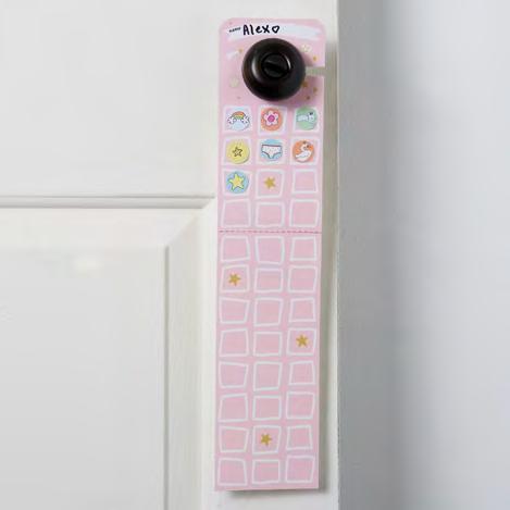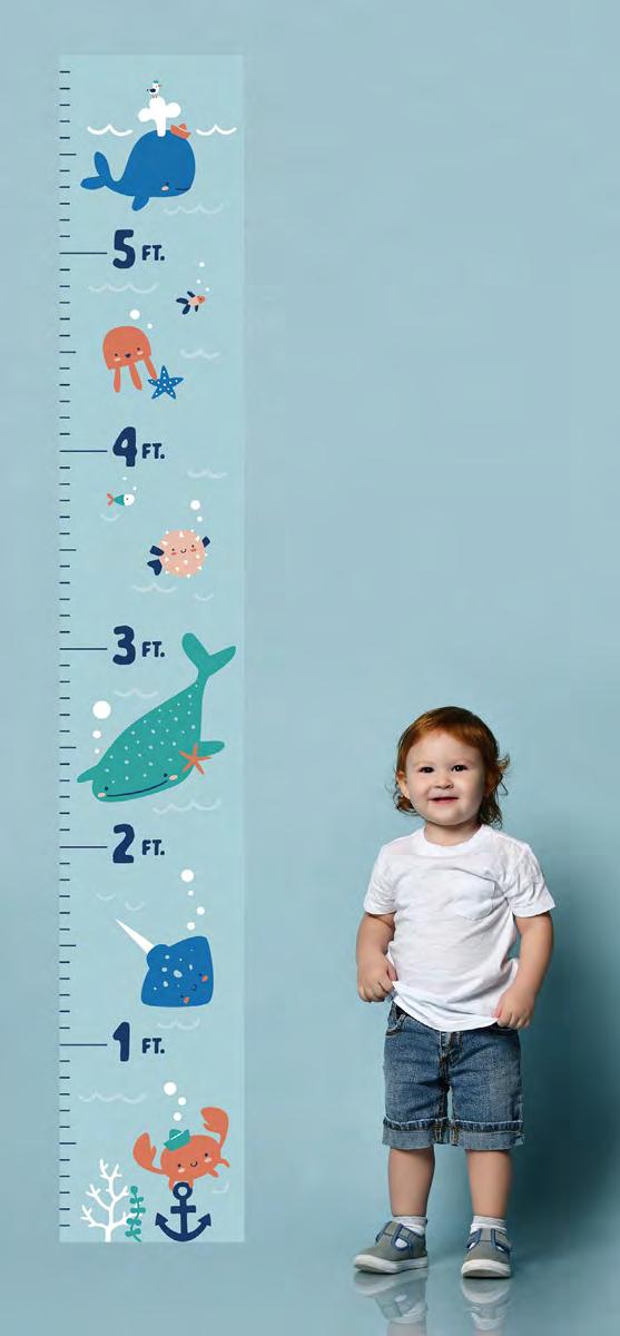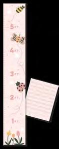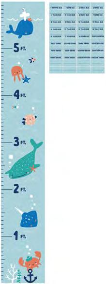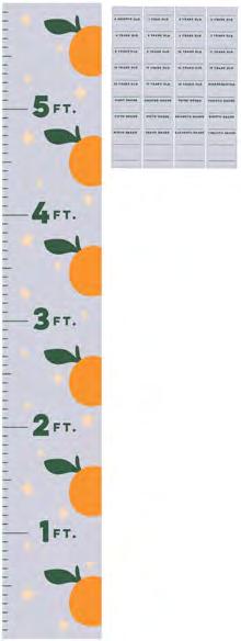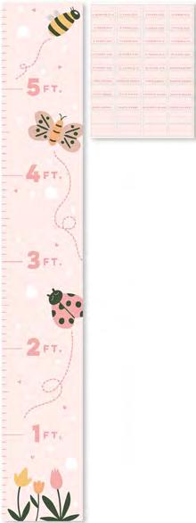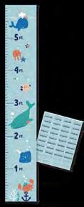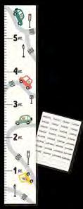 Sturdy peel and stick vinyl growth chart. Removable and repositionable. Includes an easy-touse milestone sticker sheet. Sized to fit a standard 1" x 6" board cut to size (not included). Gift Boxed. MULTIPLE 3 | $6.50