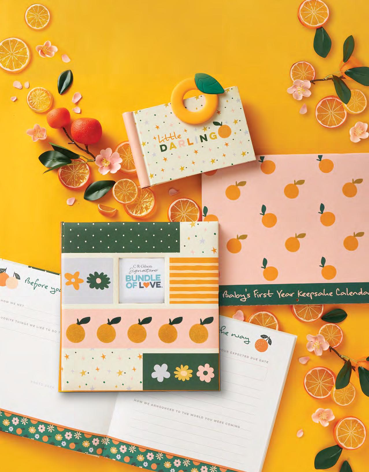 Celebrate your tiny treasure with cheerful clementines, blooming flowers and charming patterns that radiate warmth and affection.
