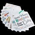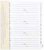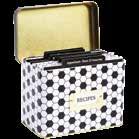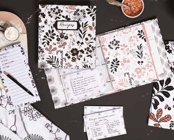 9 tabbed index divider pages. 12-2 pocket recipe card sheet protectors (holds 6” x 4” recipe cards). 24-6”x 4” recipe cards (inserted into the 2-pocket recipe card sheet protectors). 12-1 pocket sheet protector, 1 tie clasp envelope. Binder measures 11”