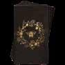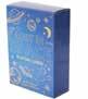 Painted wood box with hinged lid and foil stamped exterior. 20 foil stamped cards tied in twine with a black marker. 4"W x 1.25"H x 2.75"D.