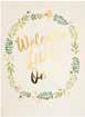 WELCOME LITTLE ONE BABY Gold foil printed message on the front that says Welcome Little One adorned with a sweet printed foral wreath. Inside Message: Congrats on the sweet arrival.