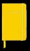 Leatherette cover with elastic band closure and ribbon bookmark. 192 lined pages. Interior storage pocket. 3.5"W x 5.5"H