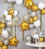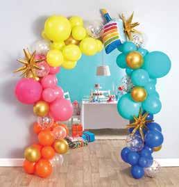 This all-in-one kit features a mix of pink, blue, and white balloons, including confetti-flled options and Mylar star balloons. The jumbo gender reveal "popper" balloon can be flled with either pink or blue confetti.