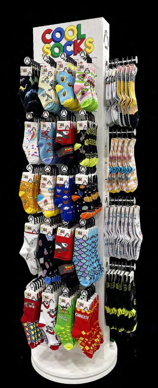 DISPLAY PROGRAMS LARGE COOL SOCKS DISPLAY MEDIUM COOL SOCKS DISPLAY TABLE TOP COOL SOCKS DISPLAY COUNTER TOP COOL SOCKS DISPLAY $1,512 - $3,456 USD 4 SIDED SPINNING DISPLAY LOCKABLE WHEELS 66”H x 38”W x 38”L CSL-FIXTURE $945 - $2,160 USD 2 SIDED SPINNING DISPLAY LOCKABLE WHEELS 69”H x 15”W x 26”L CSM-FIXTURE $315 - $720 USD TABLE TOP SPINNING DISPLAY 34”H x 18”W x 18”L CST-FIXTURE $189 - $432 USD COUNTER TOP SPINNING DISPLAY 32.5”H x 13.5”W x 12”L CSC-FIXTURE GO TO PAGE 4 TO SELECT SIDES IF THIS DISPLAY IS CHOSEN GO TO PAGE 7 TO SELECT SIDES IF THIS DISPLAY IS CHOSEN GO TO PAGE 6 TO SELECT SIDES IF THIS DISPLAY IS CHOSEN GO TO PAGE 5 TO SELECT SIDES IF THIS DISPLAY IS CHOSEN 792625312384 792625312421 792625312452 792625312469 STEP 1: CHOOSE YOUR DISPLAY ALL DISPLAYS ARE FREE WHEN FILLED 3