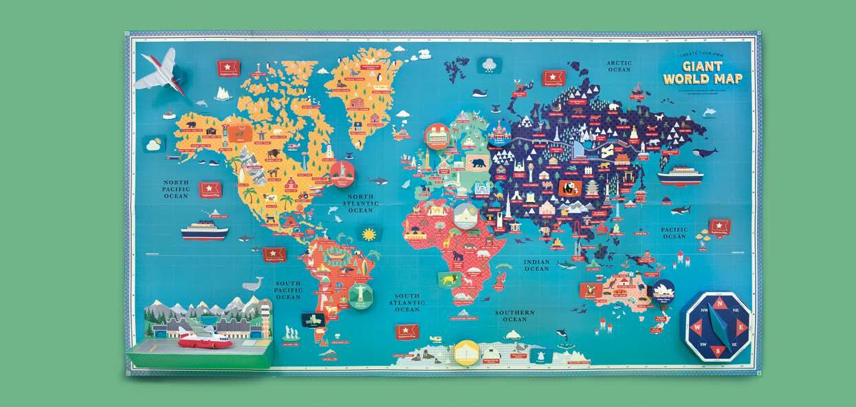Celebrate the wonders of our world by learning about its people, places, and animals. Use the giant map to navigate a route, learn about famous landmarks whilst playing a quick game of flick golf or create some wall-mounted friends to decorate your bedroom!