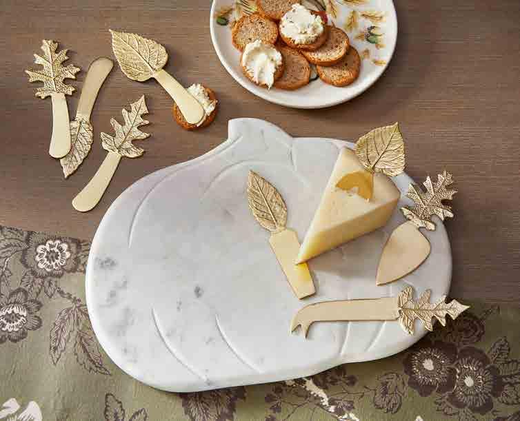 B NEW! G17157 LEAF CHEESE UTENSIL ASMT/4 (Gold) Stainless steel, brass. Artisan made. Hand wash. 6.8”L x 2”W. Pk 8 pcs $6.25 ea pc.