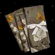 (Multi Harvest) Cotton. 1 hand screen printed satin weave, 1 yarn dyed woven dobby plaid. Hang loops. Machine wash cold separately, tumble dry low. Folded, tied w/ twill tape, hang tag. 26”L x 18”W. Pk 6 /set $7.00/set.