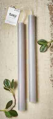 C NEW! G17428 BONE TAPER S/2 (White) Wax. Hand poured. The wick should be trimmed every 4 hours of burn time. Simply extinguish the flame, let the candle come to room temperature, and trim the wick to 1/4 of inch before relighting. Taper: 10”H x 1.25”D.; Packaging: 3.75”L x 2”W x 10.25”H. Burn time 4 hours. Pk 4 /set. $11.00/set.