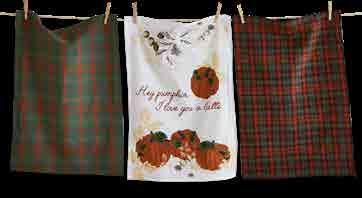 G12017 HAPPY HALLOWEEN DISHTOWEL ASMT/25 & CDU (Multi) Cotton. Hand screen printed. Hang loop. Folded, tied w/ cord & hang tag. Dishtowel: 26”L x 18”W; CDU: 12.25”L x 12.25”W x 3.1”H. Pk 25 pcs. $4.00 ea. pc.