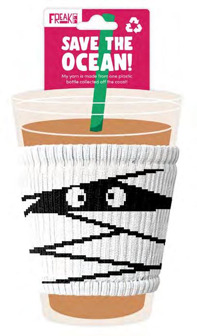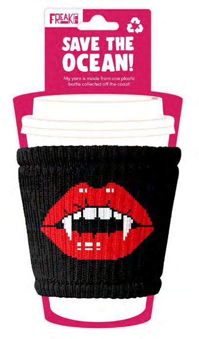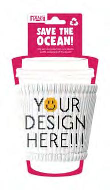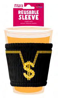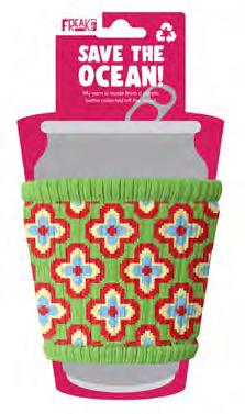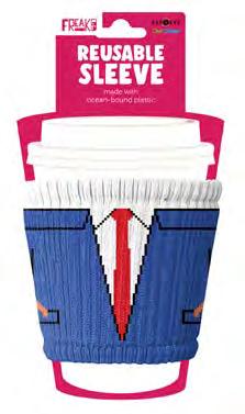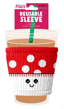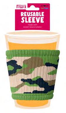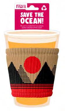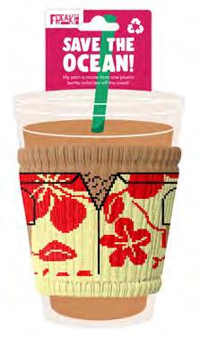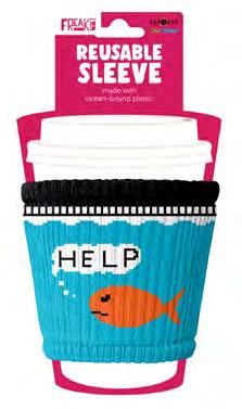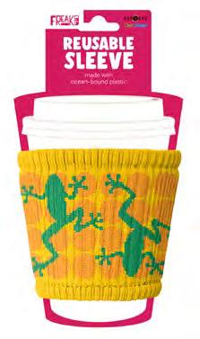 I slip on to every cup and protect your hands from hot or cold drinks. Made in the Freakin’ USA from plastic collected off the coast!