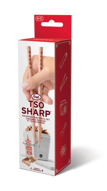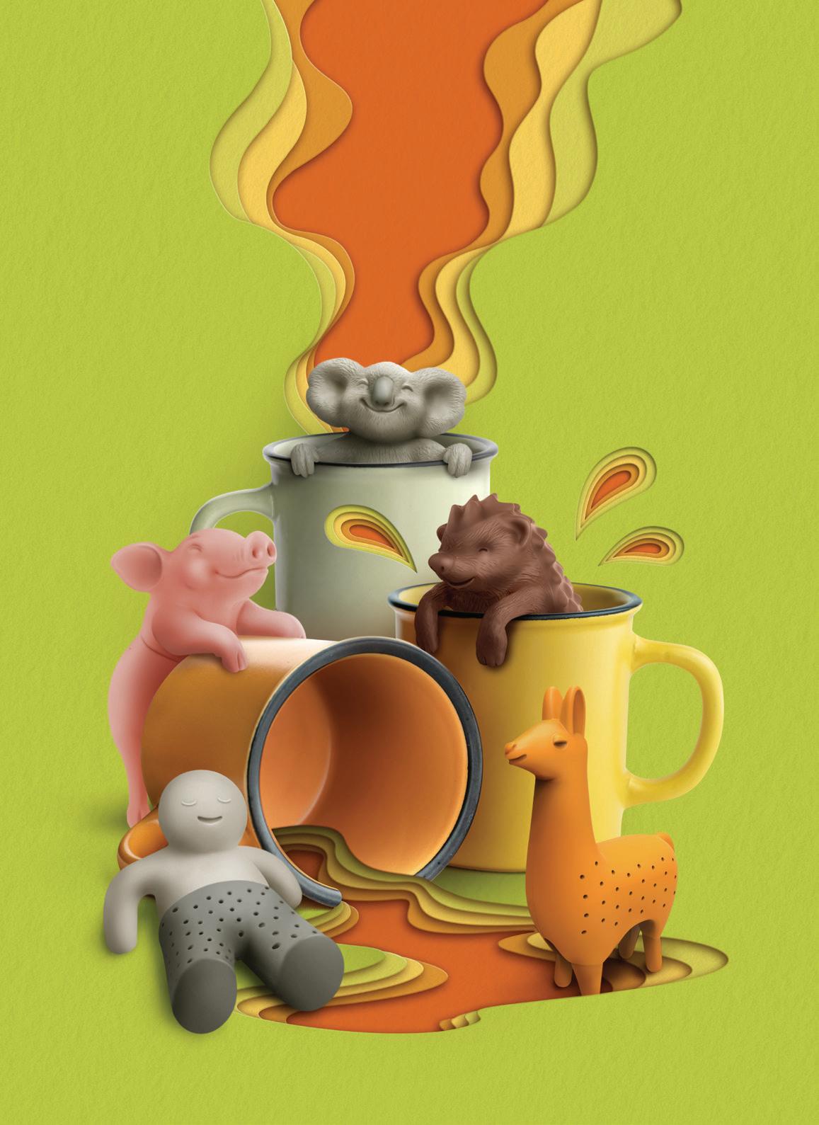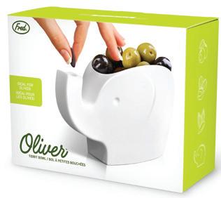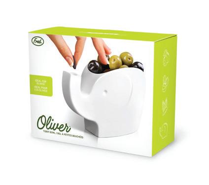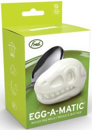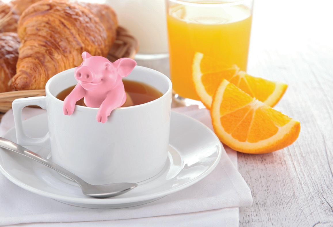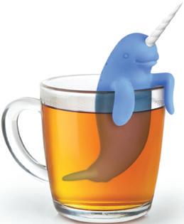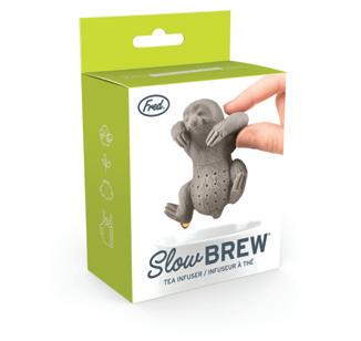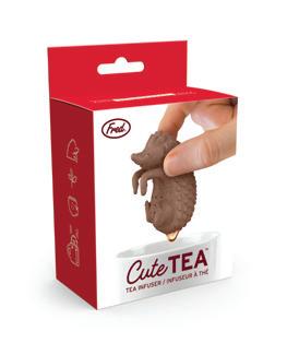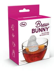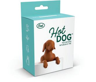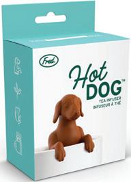 Bring home the bacon with Fred’s Hot-Belly tea infuser. Fill with your favorite loose leaf tea, hang it on the rim of your mug, kick back and swine down. Hot-Belly is constructed from heatresistant, BPA-free silicone and is microwave and dishwasher safe. Packed in a full-color, peggable gift box. Design by Yuk Wang.