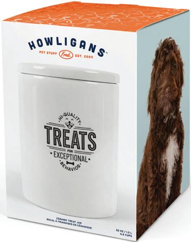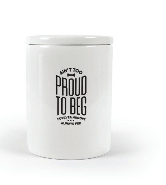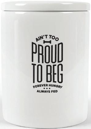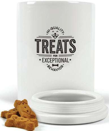 Howligans simple-yet-stylish ceramic Treat Jars are perfect for all pet lovers! The lid features a tight silicone gasket seal to keep your pet’s treats fresher, longer. This classy white stoneware jar measures 5.25" x 5.25" x 7" and is decorated with an attractive wax-resist design. Holds 52 ounces / 6.5 cups of kibble and treats. Packaged in a colorful gift box. Design by Fred Studio.