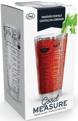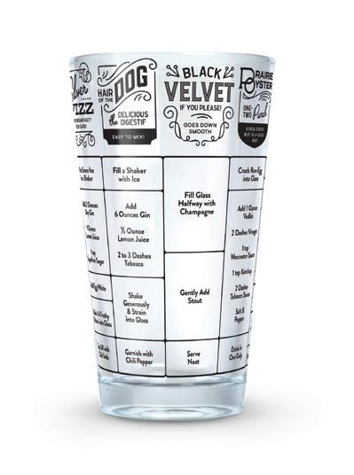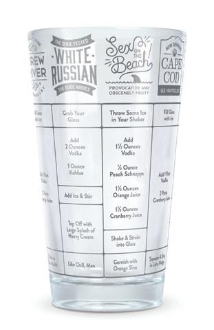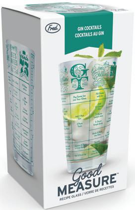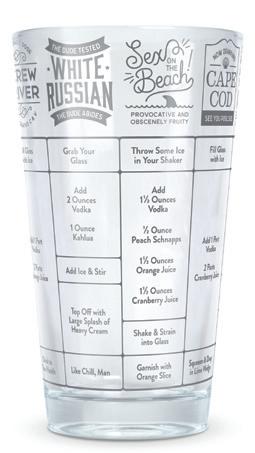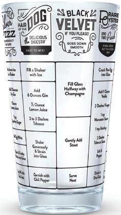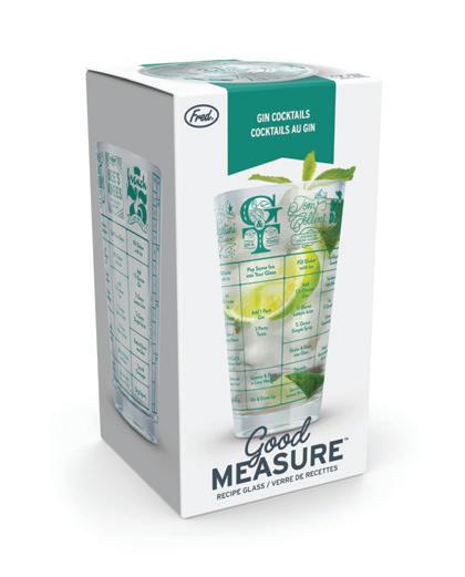 Good Measure 16-ounce measuring glasses are each printed with 7 cocktail recipes. Available in 6 styles: Gin, Rum, Vodka, Whiskey, Tequila — and the cure for all the others — Hangover. Cheers! Packaged in a full-color gift box. Hand wash only. Design by Jennifer