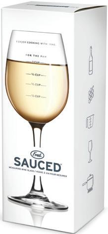 “I enjoy cooking with wine. Sometimes I even put it in the food.” That famous quote is also Fred’s culinary mantra. It matters not whether the wine is destined for the chef or for the pan, you’ll be prepared! Sauced is a 12-ounce, leadfree-crystal, all-purpose wine glass, accurately marked in 1⁄4 cups and 2-ounce sips. Full-color giftbox packaging. Design by Liz Goulet Dubois and Winsor Pop, Fred Studio.