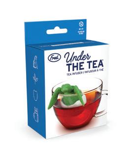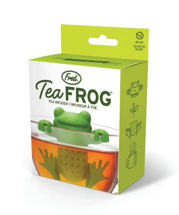 Heighten your tea experience by leaps and bounds with this unfrogettable tea infuser! Fill Fred’s Tea Frog with your favorite loose leaf tea, hang it on the rim of your mug, and enjoy his ribbiting company. Tea Frog is constructed from heatresistant, BPA-free silicone and is microwave and dishwasher safe. Packed in a full-color, peggable SBS box. Design by Yuk Wang.