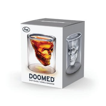 This formidable shot glass is Fred’s tribute to the Skull of Doom, which Mayan legend claims has the power of life and death, the power to heal or to smite, the power to create miracles. We make no claims beyond these: Doomed will hold 2 1⁄2 ounces of your favorite beverage and is hand-blown crystal clear borosilicate glass, individually packaged in a colorful, yet mysterious giftbox.