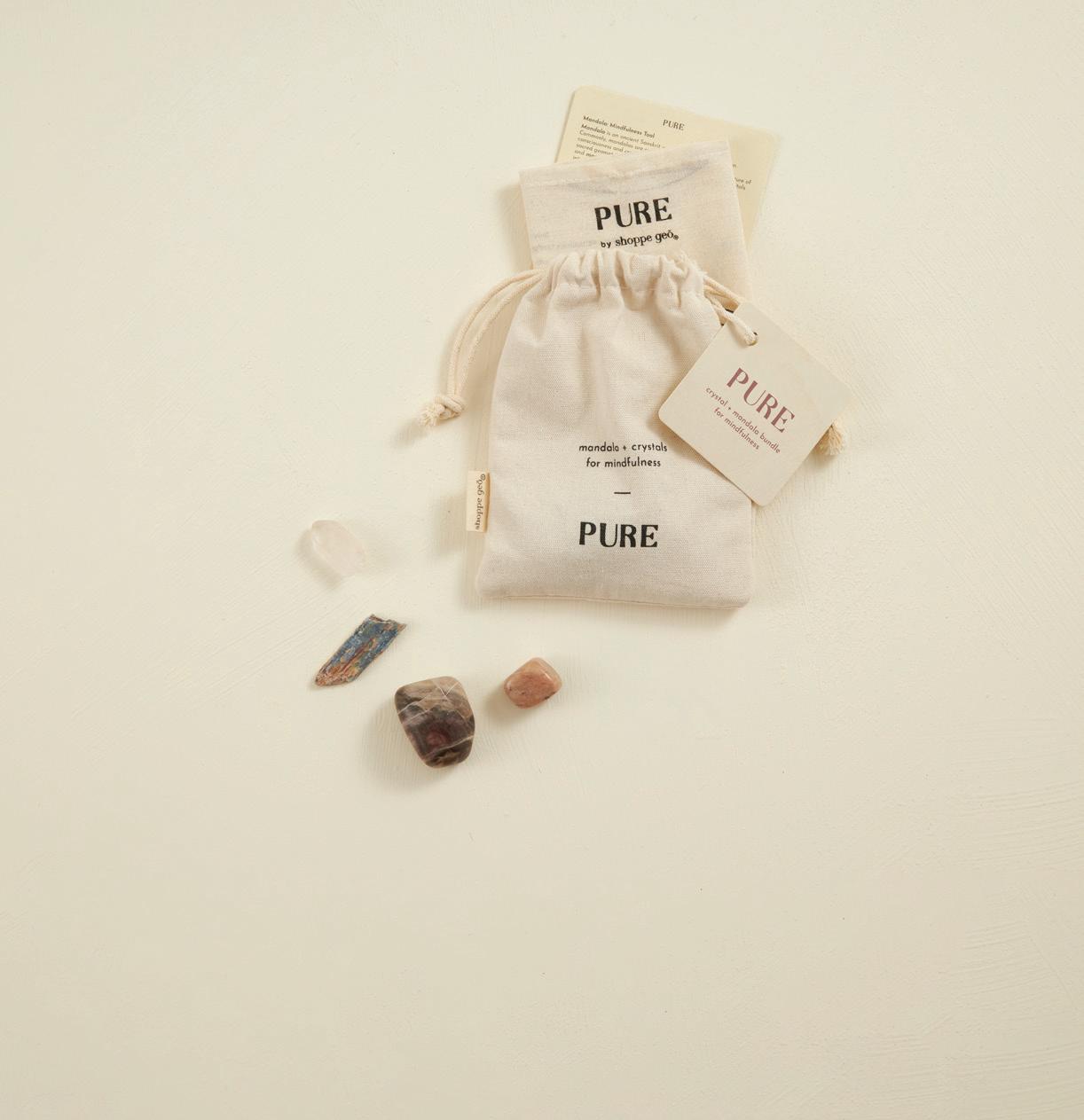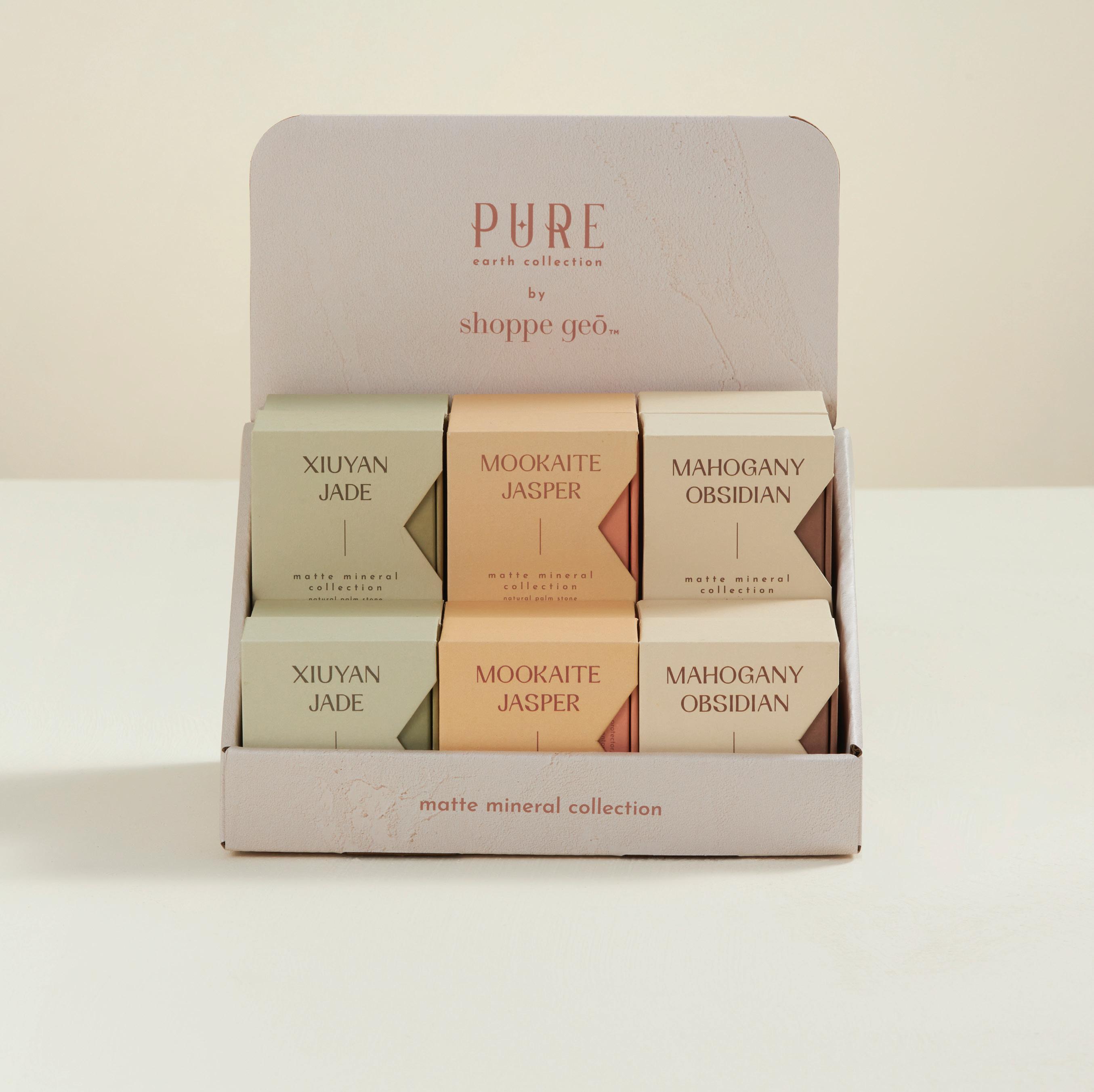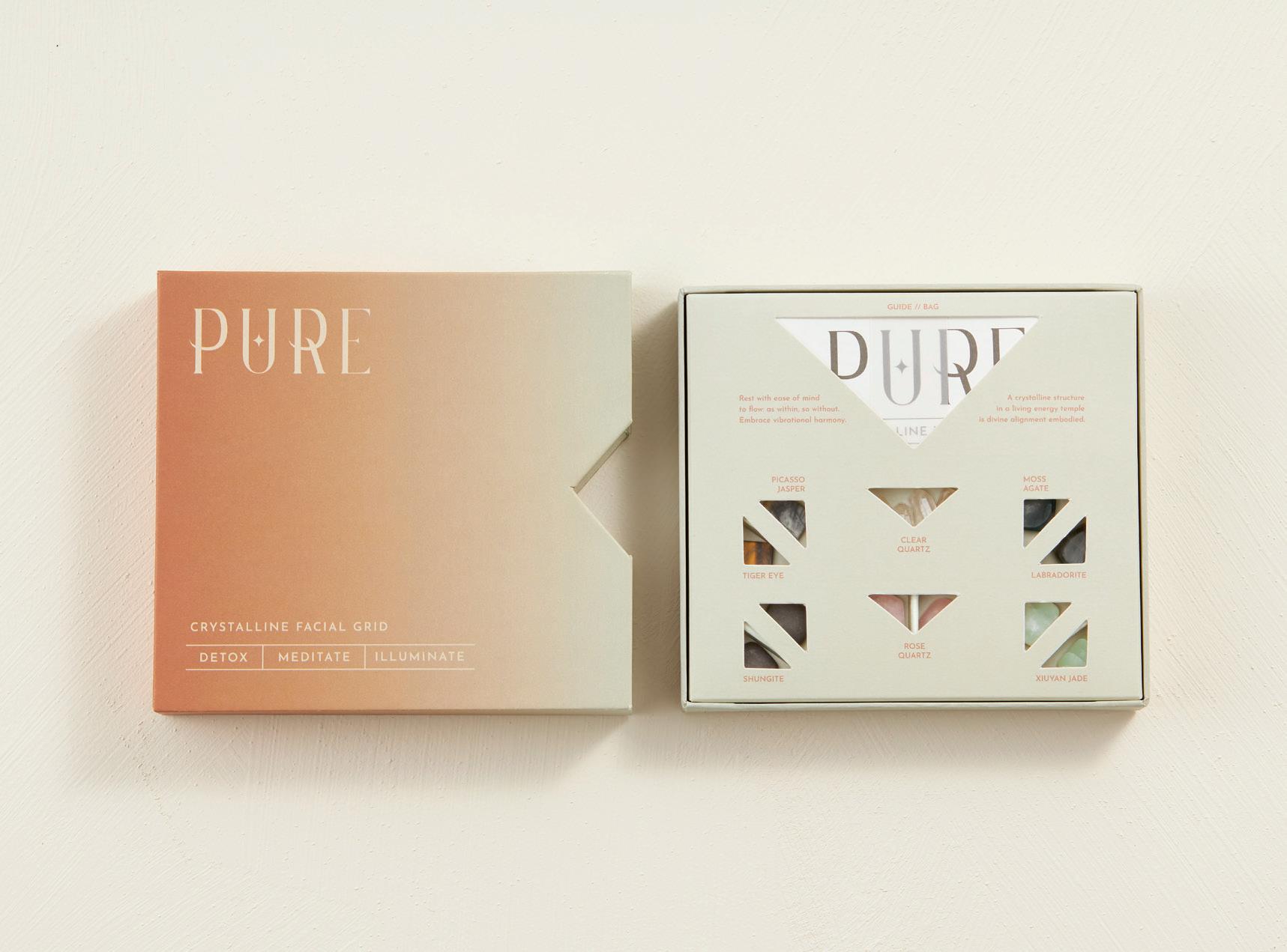 PURE Earth Collection is a holistic product line focused on wellness, relaxation, and rejuvenation. This collection is inspired by ancient wellness tools and the serene colors of nature. Packaging is 100% plastic-free and recycle-friendly. We began including recycling information on the packaging of our boxed crystal collections.