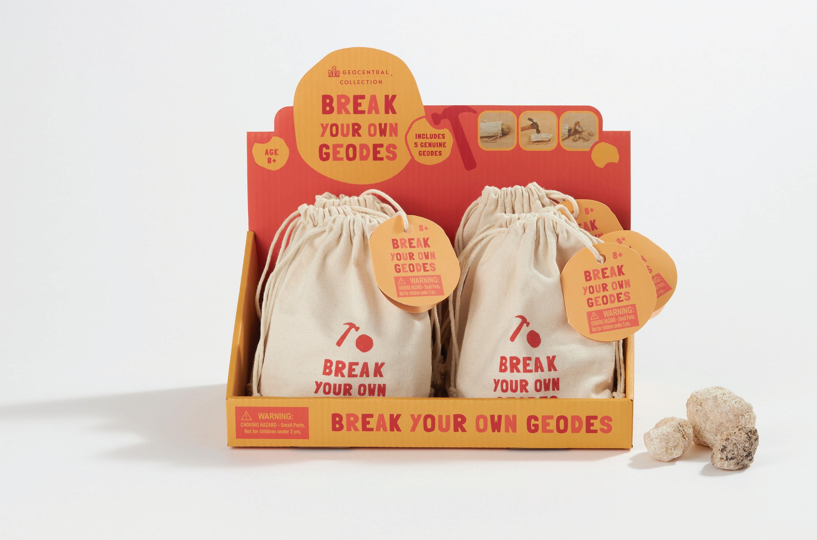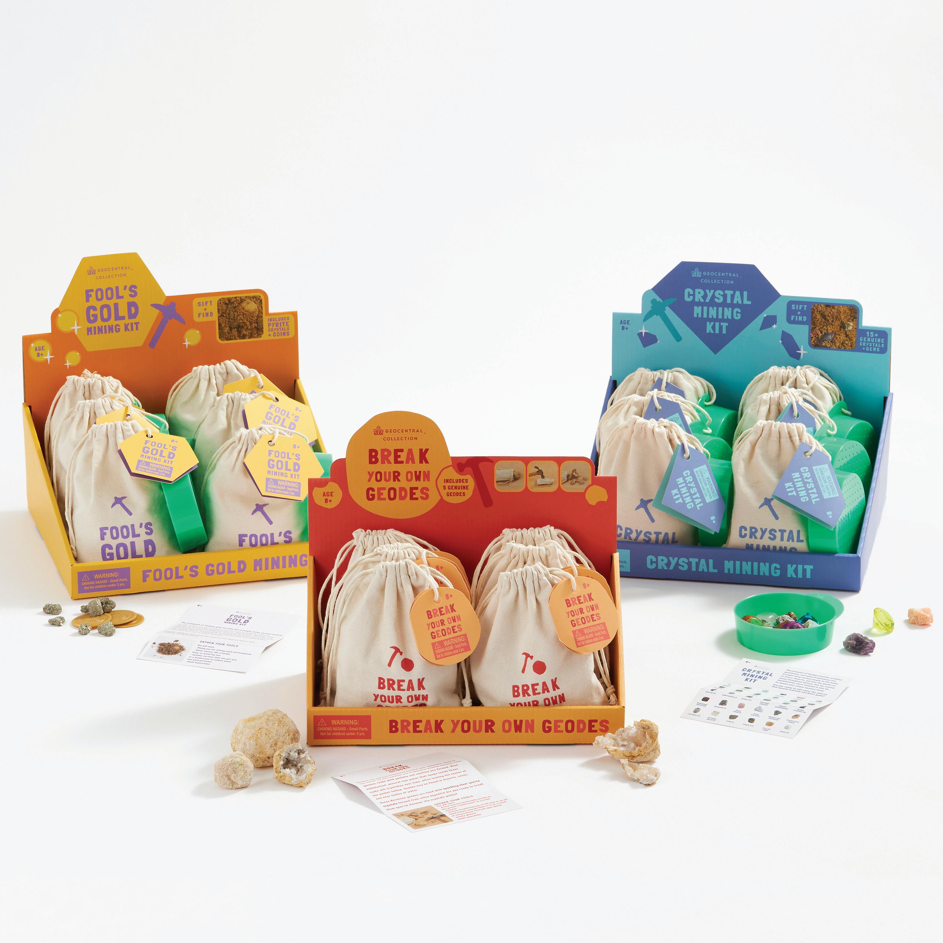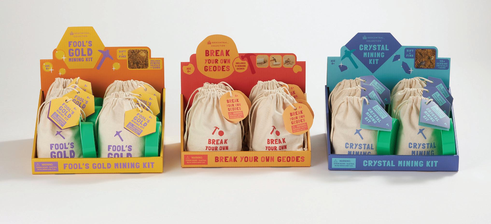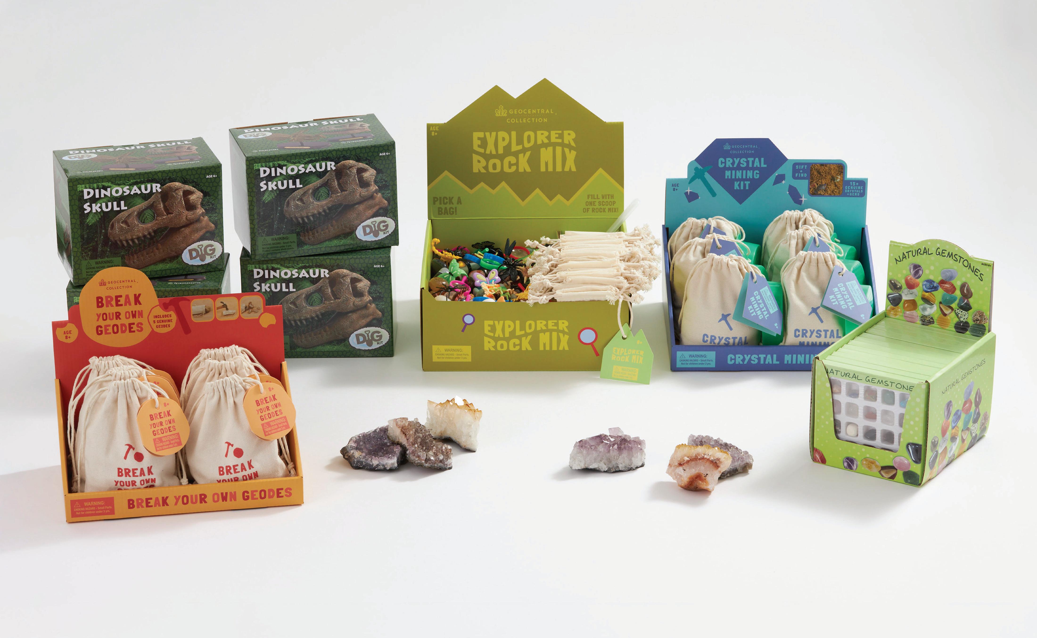 GeoCentral Collection offers a variety of classic toy, souvenir, and impulse items, including rock mixes, break your own geodes, and dig kits.