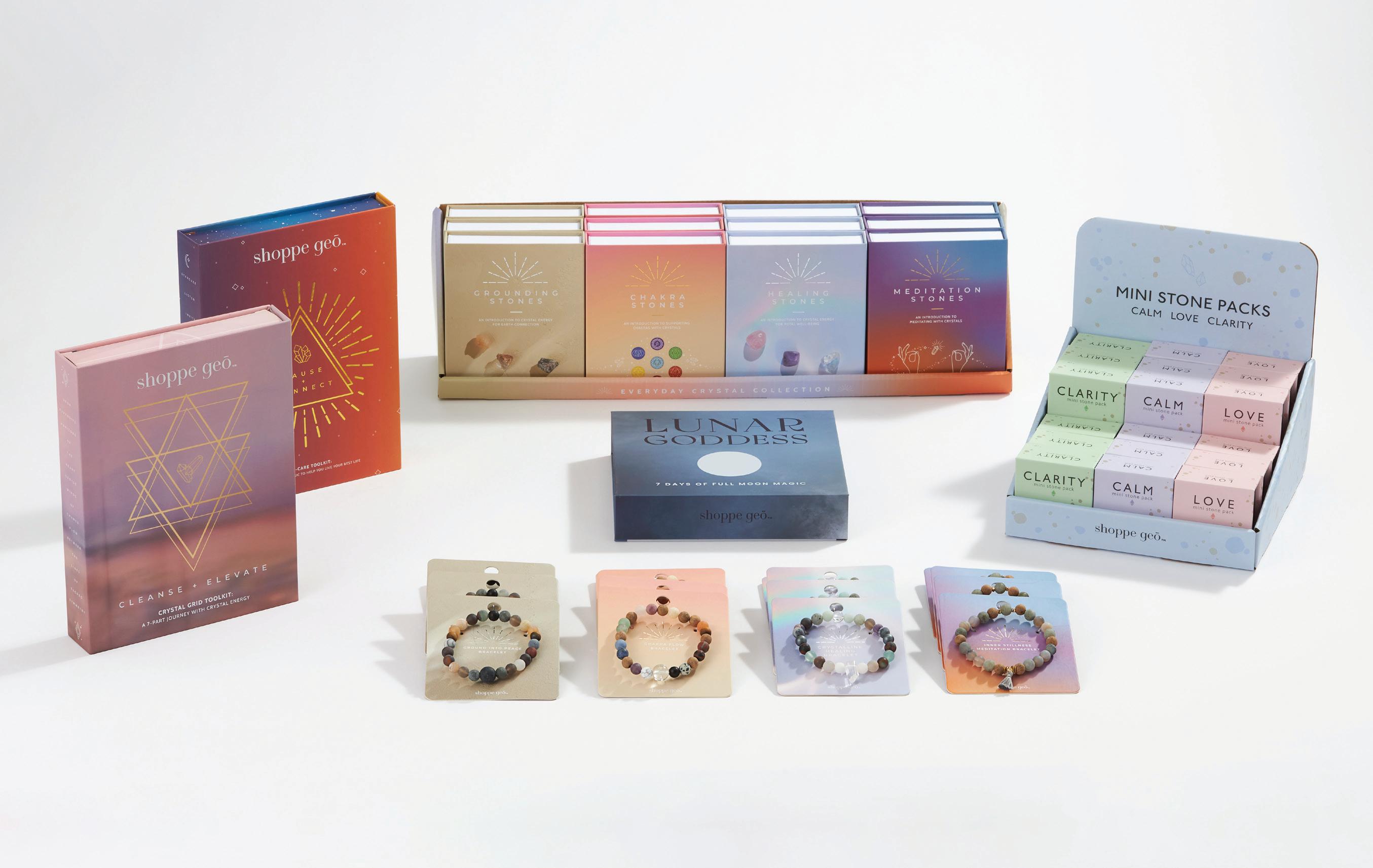 Shoppe Geo offers retail-ready boxed crystal collections, jewelry, and home décor. The items in this collection feature on-trend themes and packaging, developed and designed by our in-house team.