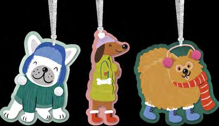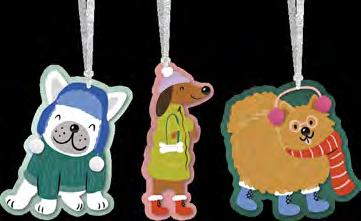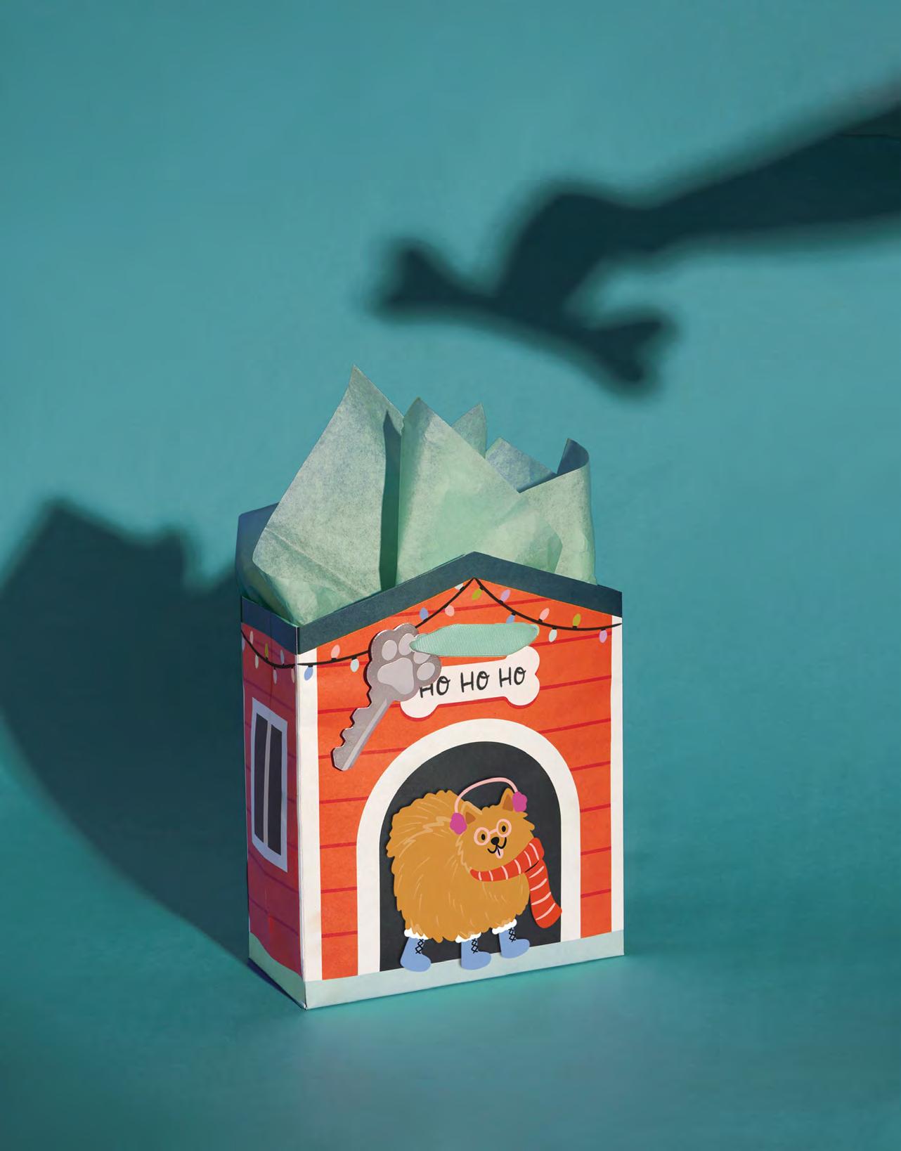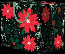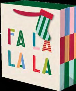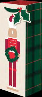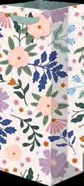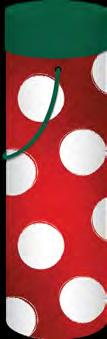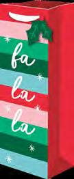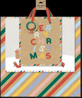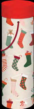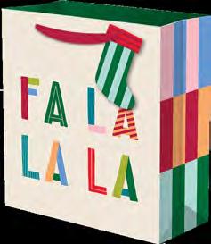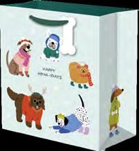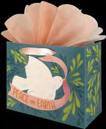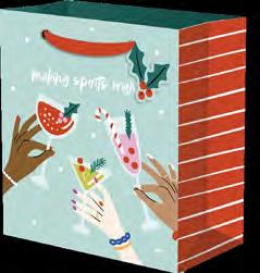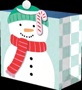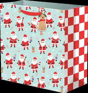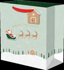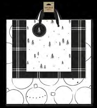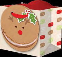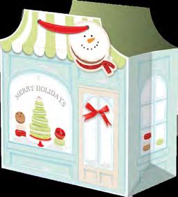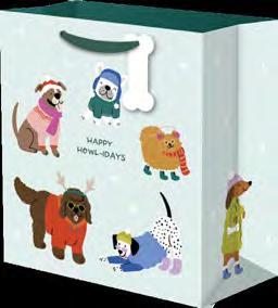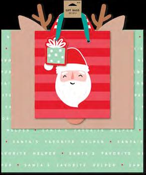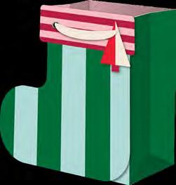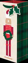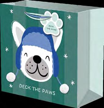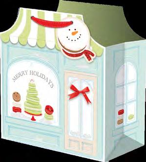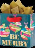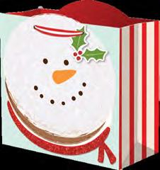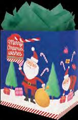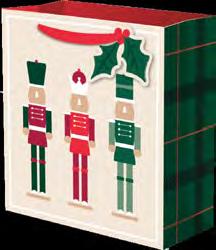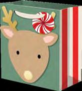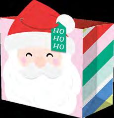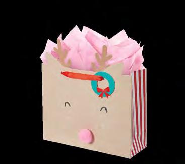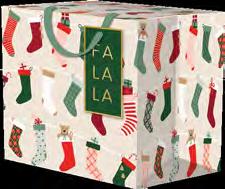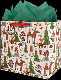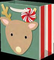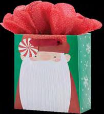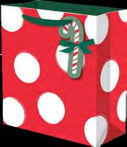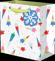 12.25 in x 12.25 in x 5 in $18.00 pack of 6 | $3.00 each printed on white kraft, grosgrain ribbon handle, felt pom tag