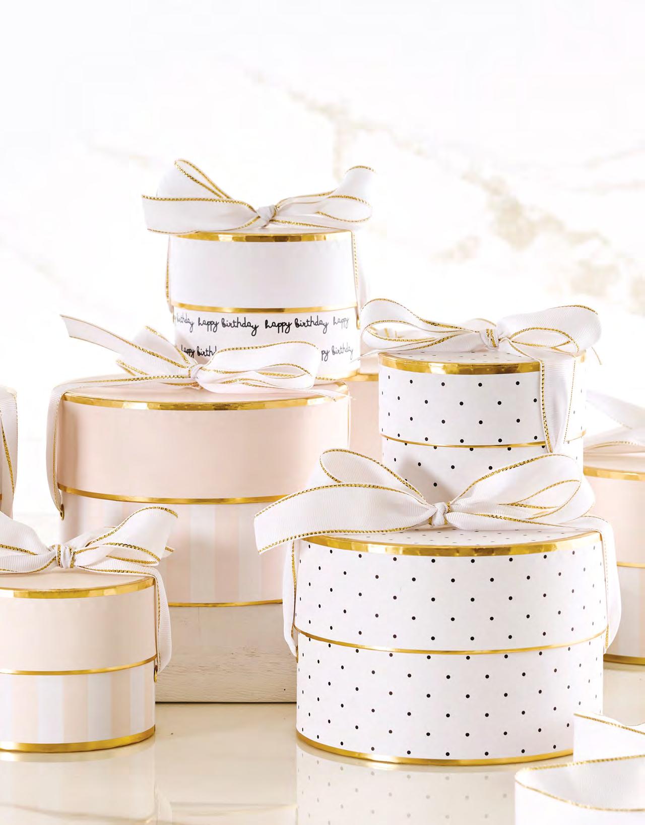 Our NEW paper gift boxes come in a set of 2 nested sizes. Finished with coordinating ribbons and gold accents. Perfect for birthdays or any special occasion!