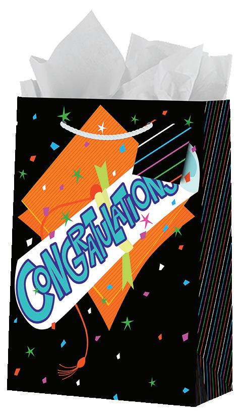 LIGHT BLUE 500 - 00024 - 000 MSRP: $3.99 LIGHT PINK 500 - 00030 - 000 MSRP: $3.99 LIGHT YELLOW 500 - 00034 - 000 MSRP: $3.99 1 UNIT = 12 BAGS BOTTLE BAG : 4.875” X 13” • TRIANGLE BAG : 5.25” X 13” WHITE 500 - 00020 - 000 MSRP: $3.99 1 UNIT = 12 PACKS SOLID & MULTI-PACK : 8 SHEETS PER PACK • MATTE & PATTERN : 5 SHEETS PER PACK • METALLIC : 3 SHEETS PER PACK EACH SHEET: 20” X 26” SEASONAL 501 - 99026 - 000 MSRP: $5.49 SEASONAL 501 - 99998 - 001 MSRP: $5.49 CONGRATULATIONS CONT’D • SEASONAL SOLID CONGRATULATIONS 501 - 99568 - 000 MSRP: $5.49