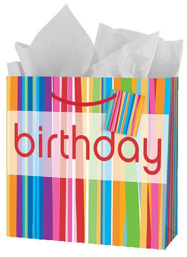 GIFT BAGS 29 To order, call 1.800.654.6960 | www.DesignerGreetings.com 1 UNIT = 12 BAGS | 1 GI. UNIT = 6 BAGS MINI (MI.) : 3” X 4” | SMALL (SM.) : 4.75” X 6” | MEDIUM (ME.) : 8” X 10” | MEDIUM HORIZONTAL (MEH.) : 10” X 8” | LARGE (LG.) : 10” X 12.5” LARGE HORIZONTAL (LGH.) : 12.5” X 10” | JUMBO (JU.) : 12.75” X 17.5” | JUMBO SQUARE (JUS.) : 15” X 15” | GIANT (GI.) : 16” X 20” F = FOIL • G = GLITTER • CP = COMBO PACK • DC = DIE-CUT • J = JEWEL GEMS • K = KRAFT PAPER • GE = GOOGLY EYES SA = SPECIALTY ATTACHMENT • SG = SPECIALTY GLOSS BIRTHDAY CONT’D • KIDS BIRTHDAY • HIM BIRTHDAY LG. 501 - 52261 - 000 MSRP: $5.99 BIRTHDAY SM. 501 - 12268 - 002 MSRP: $3.99 BIRTHDAY ME. 501 - 32270 - 002 MSRP: $4.99 LG. 501 - 52270 - 002 MSRP: $5.49 BIRTHDAY LG. 501 - 52269 - 002 MSRP: $5.99 BIRTHDAY LG. 501 - 52268 - 001 MSRP: $5.99 BIRTHDAY ME. 501 - 32269 - 001 MSRP: $4.99 GI. 501 - 92268 - 001 MSRP: $7.99 LG. 501 - 52269 - 001 MSRP: $5.99 BIRTHDAY LG. 501 - 52121 - 002 MSRP: $5.99 BIRTHDAY GI. 501 - 92120 - 002 MSRP: $8.99 BIRTHDAY GI. 501 - 92121 - 000 MSRP: $7.99 BIRTHDAY ME. 501 - 32397 - 002 MSRP: $3.49 LG. 501 - 52397 - 002 MSRP: $4.49 JUS. 501 - 72397 - 002 MSRP: $5.49 KIDS BIRTHDAY ME. 501 - 32405 - 002 MSRP: $4.99 KIDS BIRTHDAY ME. 501 - 32405 - 003 MSRP: $4.99 LG. 501 - 52405 - 003 MSRP: $5.99