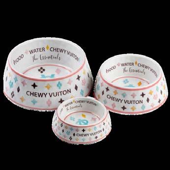 HDD-200|WHITEMONOGRAM CHEWYVUITONBOWLS THREESIZES:SM8OZ./MED 23OZ./LG48OZ. PRICE:$8.95/$12.95/$18.955EACH CASEPACK:2