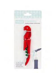 Bar and beverage essentials including corkscrews, cocktail shakers, and drinkware in retail-friendly packaging.