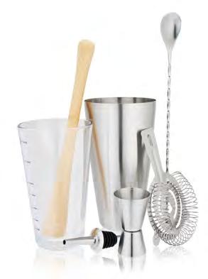 I ncludes julep strainer, bar spoon, wood muddler, jigger, & mixing glass