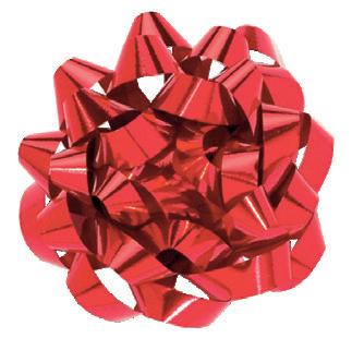1 UNIT = 12 BOWS LARGE (LG.): 4.5” IN DIAMETER•JUMBO (JU.): 6” IN DIAMETER RED LG. 505 - 50100 - 000 $3.99 us JU. 505 - 70100 - 000 $4.99 us SILVER METALLIC LG. 505 - 50201 - 000 $4.29 us JU. 505 - 70201 - 000 $4.99 us GREEN LG. 505 - 50165 - 000 $3.99 us JU. 505 - 70165 - 000 $4.99 us GOLD METALLIC LG. 505 - 50200 - 000 $4.29 us JU. 505 - 70200 - 000 $4.99 us SILVER MATTE LG. 505 - 50204 - 000 $4.29 us JU. 505 - 70204 - 000 $4.99 us GOLD HOLOGRAPHIC LG. 505 - 50300 - 000 $4.29 us JU. 505 - 70300 - 000 $4.99 us SILVER HOLOGRAPHIC LG. 505 - 50301 - 000 $4.29 us JU. 505 - 70301 - 000 $4.99 us RED HOLOGRAPHIC LG. 505 - 50302 - 000 $4.29 us JU. 505 - 70302 - 000 $4.99 us WHITE IRIDESCENT LG. 505 - 50402 - 000 $4.29 us JU. 505 - 70402 - 000 $4.99 us WHITE LG. 505 - 50020 - 000 $3.99 us JU. 505 - 70020 - 000 $4.99 us RED METALLIC LG. 505 - 50202 - 000 $2.99 us JU. 505 - 70202 - 000 $4.99 us GOLD MATTE LG. 505 - 50203 - 000 $4.29 us JU. 505 - 70203 - 000 $4.99 us
