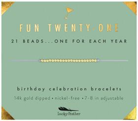 Lucky Feather’s messages of positivity and empowerment aim to inspire girls and women everywhere to achieve their dreams. We support organizations that share our vision through donations and with our “Giving Bracelets” program where we have formed partnerships with The Pad Project, WWRAP, KAB, Loveland, Girls Inc, and the Downtown Women’s Center. Other organizations include, JDRF, Heal the Bay and the Cancer Research Center. Read more about this on our website at www.luckyfeatherwholesale.com. We thank you for the part you play in allowing us to support these important causes.