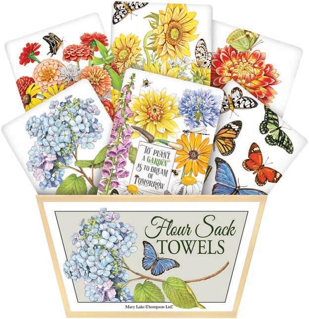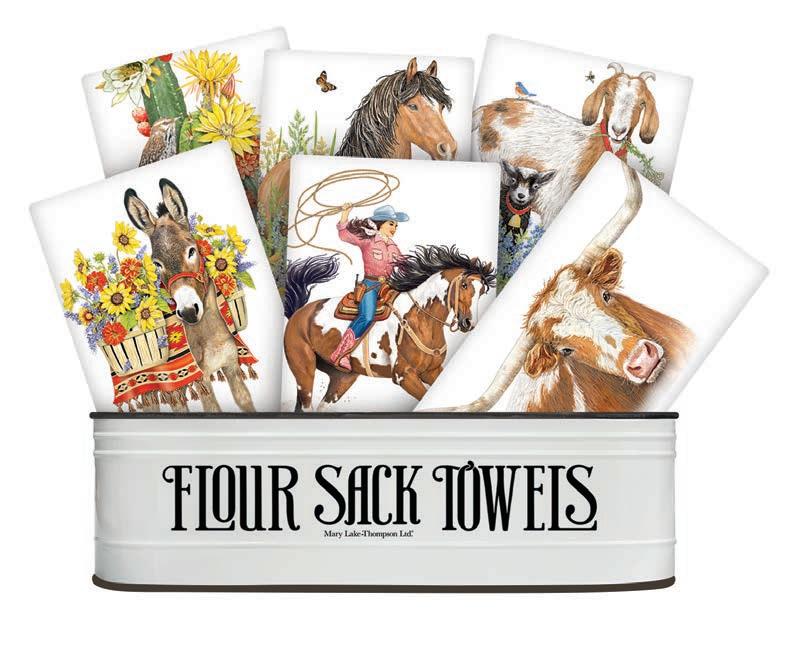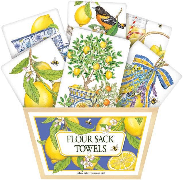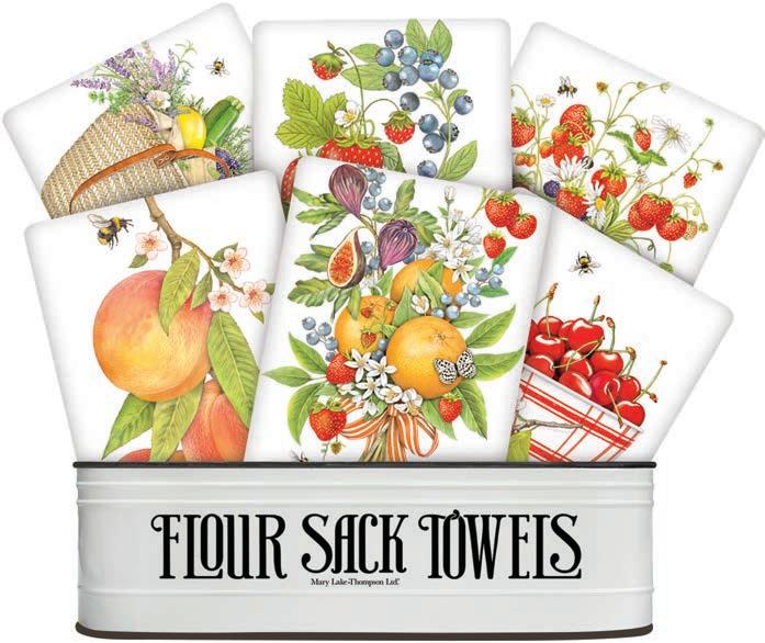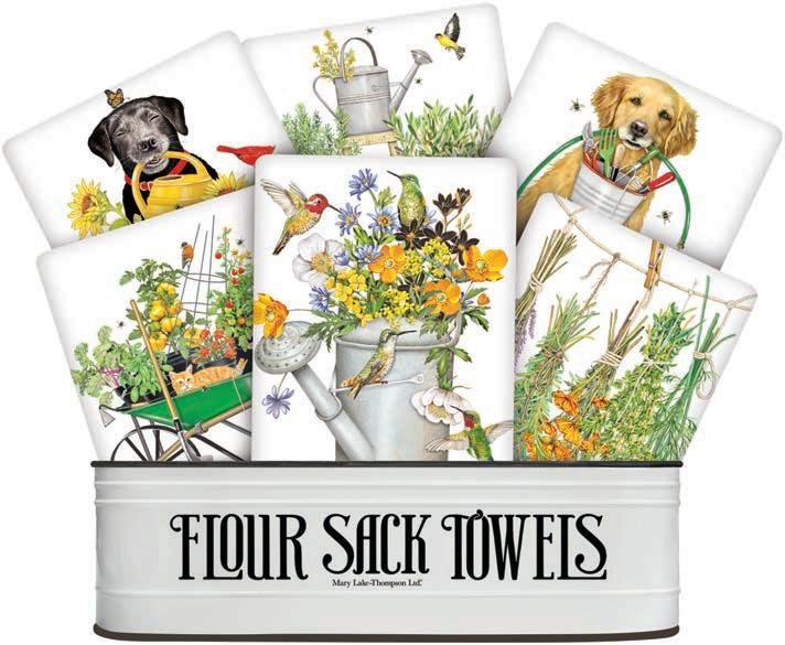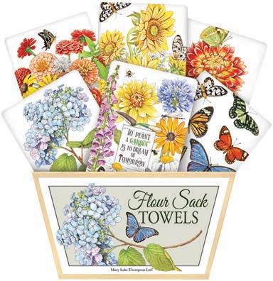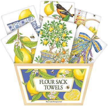 Over the past forty-three years, Mary and her husband Richard Thompson have turned their small card business into a nationally recognized giftware company. Located in historic downtown Oroville, California, they have expanded their products to not only include flour sack towels, but aprons, tote bags, ceramics, cake mixes, sponge cloths and much more. With a focus on creative packaging and quality products, buyers find continuing success with this wonderful brand.