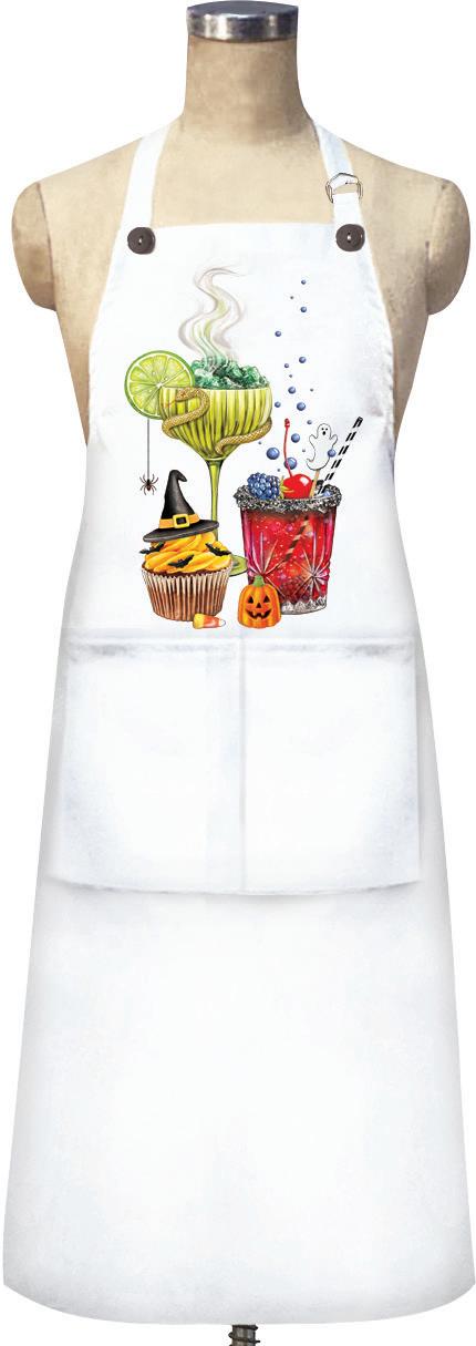 Each apron has two large pockets and an adjustable neck strap. Folded and bagged for display. One size fits all.
