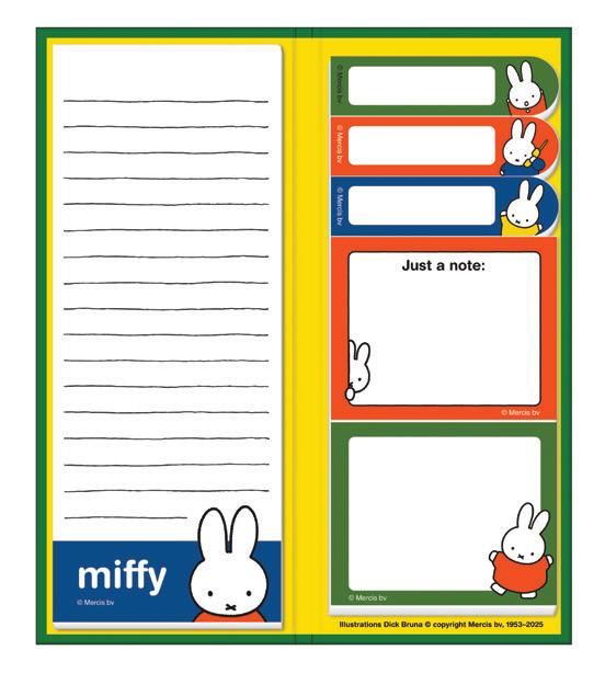 l This booklet houses a variety of Miffy-themed sticky notes and is secured with a coordinating elastic band.