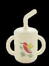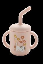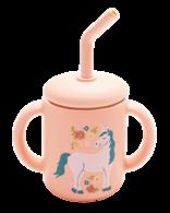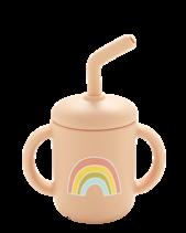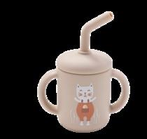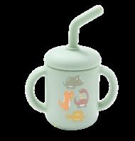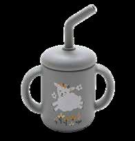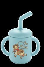 Silicone cup includes removable lid & straw Easy grip handles for little hands