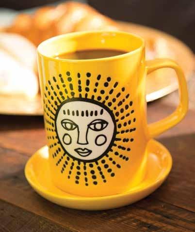 Add some flash to the table with vibrantretro-modernmugs instrikingcolorsand patterns. Matching coasters are great forcandles,change,or yes,evenunderamug orglass Qualitydinnerware ceramicconstruction, lead-free